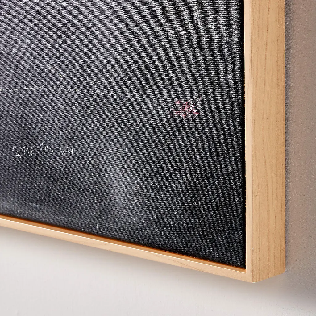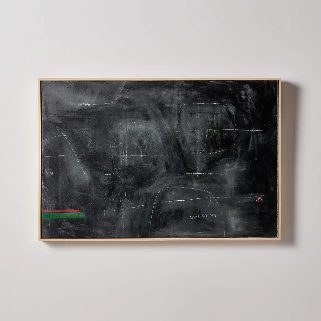 New York City artist Keren Toledano's abstract work creates dialogue between elements in tension. "Charcoal And Fennel" explores the syntax and grammar of painterly marks: chalkboard scratches as thoughts, geometric shapes as empathetic proclamations. Fabric scraps breaking the plane of the canvas are actions taken in response to ideas. This reductive print of the original work is presented on stretched canvas in a natural frame for effortless display in your home collection. The Art Patron collection uses groundbreaking proprietary technology to bring fine art beyond the gallery, spanning both contemporary working artists and archival pieces sourced from flea markets and museums across the globe.