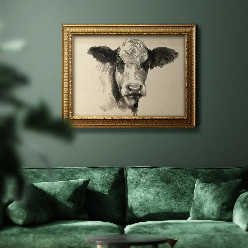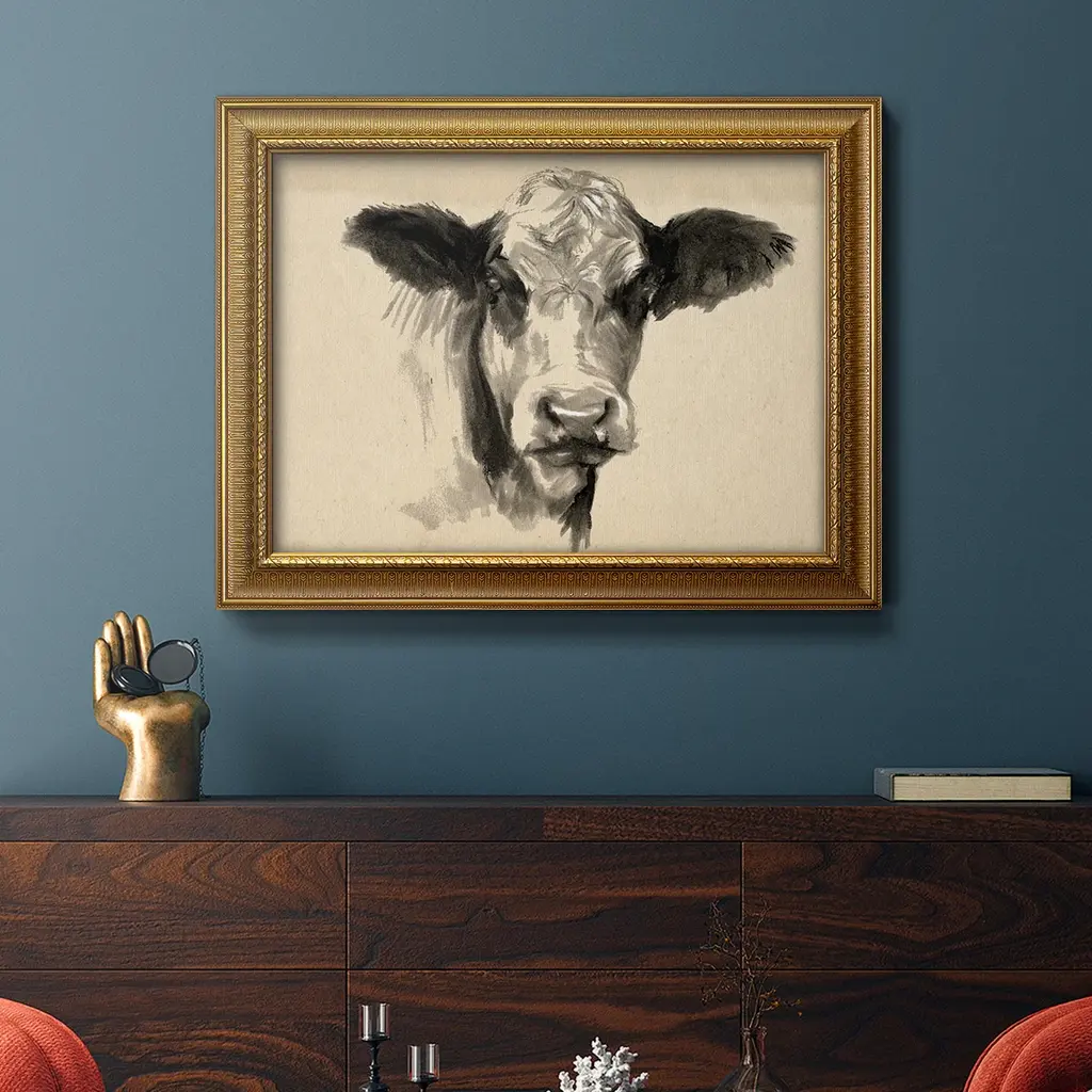 Charcoal Cow Ii Premium Framed Canvas- Ready To Hang - 16x20 - Gold