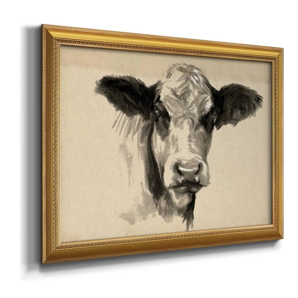 Charcoal Cow Ii Premium Framed Canvas- Ready To Hang - 16x20 - Gold