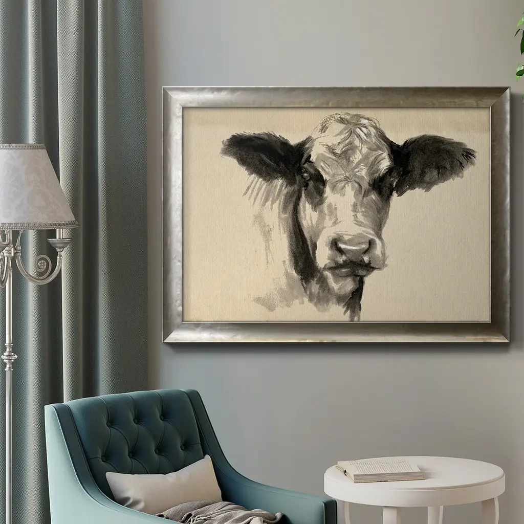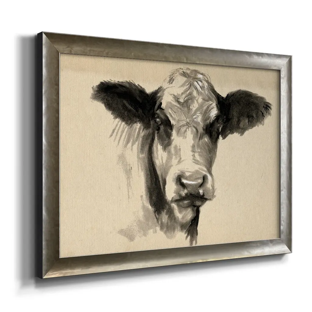 Charcoal Cow Ii Premium Framed Canvas- Ready To Hang - 24x36 - Silver