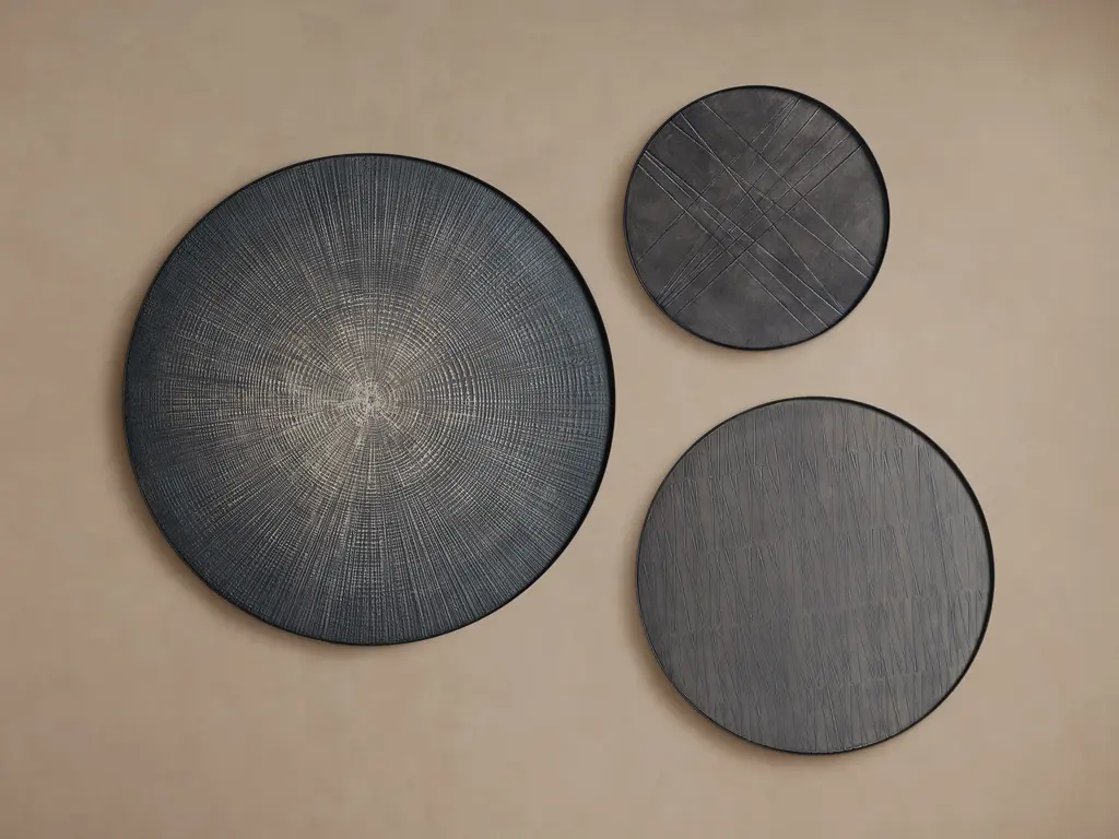 Our collection of round wall decor makes a statement with rich color tones and eye-catching textures to complement any home décor aesthetic. Artist Dawn Sweitzer uses abstract patterns that interact with materials, colors, textures, and finishes to capture images and sensations from her many travels around the world. These circular forms tell a story of expert craftsmanship and attention to detail—from the textured surfaces to the brushstrokes of paint and final powdered coatings, giving unique character to each stunning piece.