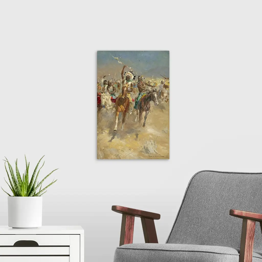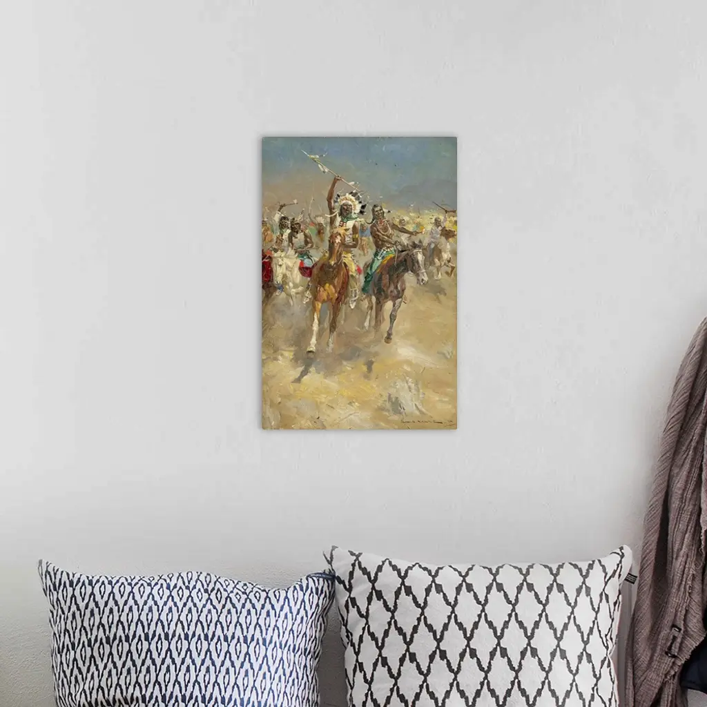 Charging Indians on Horseback. Original artwork for "Look and Learn," issue 59, 2 March 1963.