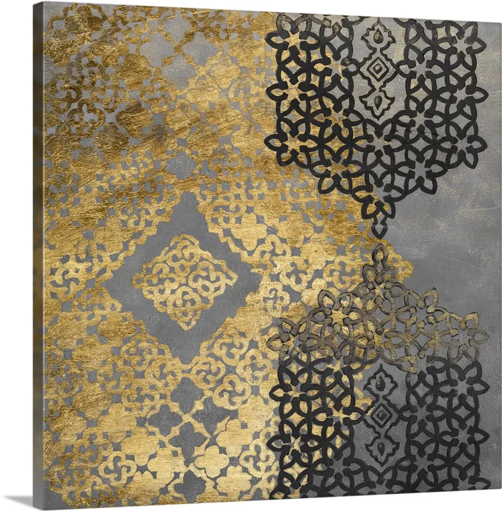 Golden Filigree II by Chariklia Zarris is a high quality piece of canvas artwork. The finished size of this piece is 24" X 24", and it has a depth 1.5" with black painted sides. There is a UV protective coating over the entire image, and it is ready to hang on your wall with no hardware required.