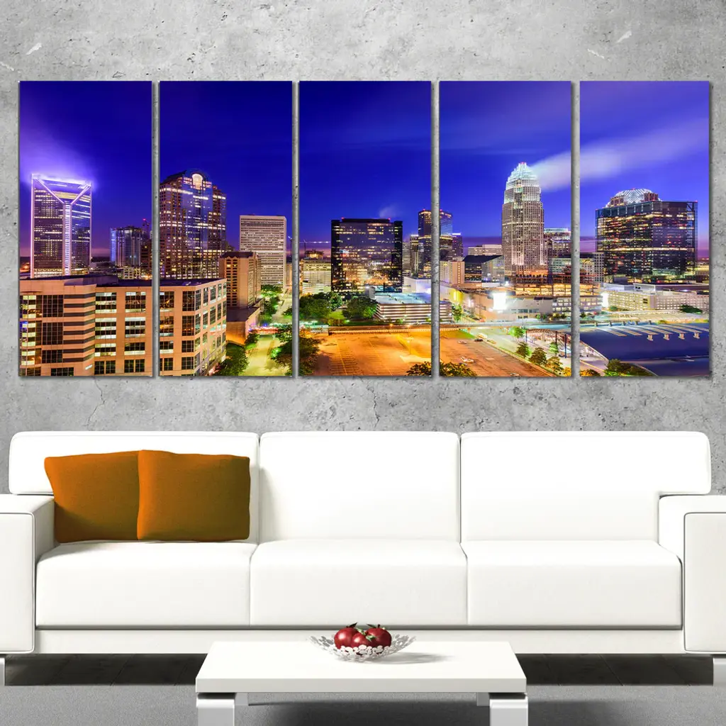 "Charlotte North Carolina" Canvas Print60"x28", 5-Panels