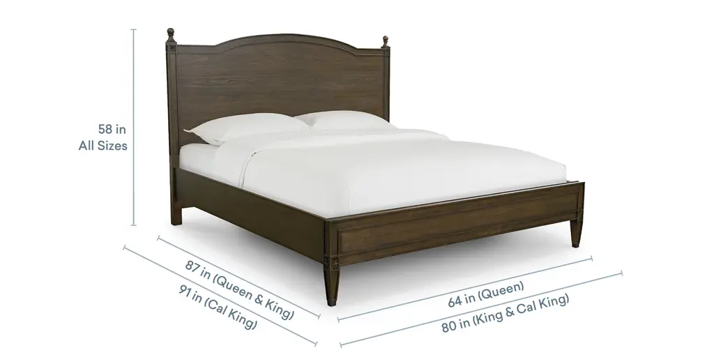 Like the frame of a classic painting, the Charlotte Panel Bed adds old-world charm to the room with its pared-down traditional lines. The shape of the arched wood panel headboard pairs with the simplicity of a low wood footboard. Traditional details include the understated carved rosettes and recessed lines in the beds gently tapered legs, metal ferrules, and bedposts with simply turned finials. Modern finishes highlight the details and grain of the elm veneer with moderate distressing and glaze. Choose dark Tavern finish or soft Washed Elm.