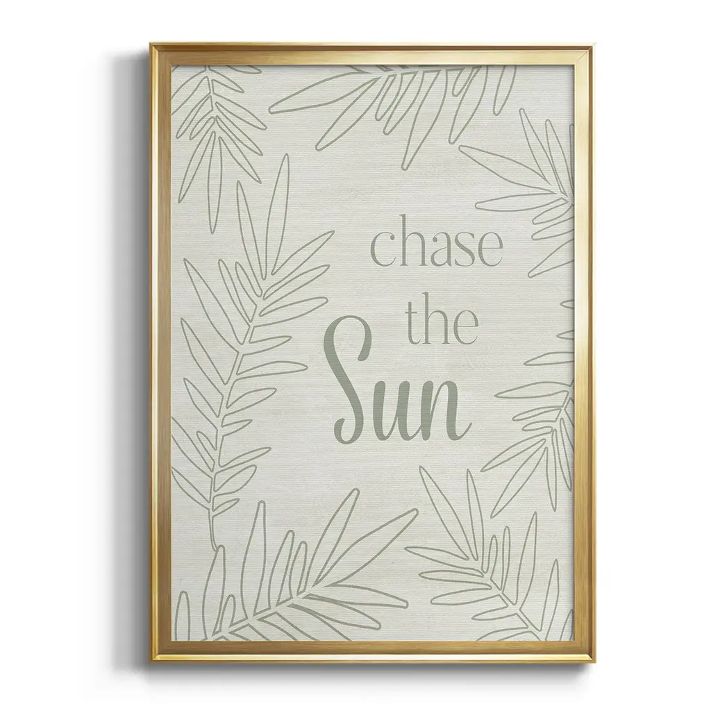 Chase the Sun Premium Framed Print - Ready to Hang A Premium Framed Print created to last. Framed in distressed wood and available in an array of sizes and colors Featuring a beveled a solid wood stretcher bar, each piece comes ready to hand 4 SIZES AVAILABLE 30.5''X42.5'' - Overall Size 26.5'X36.5'' - Overall Size 22.5''x30.5'' - Overall Size 18.5''x24.5'' - Overall Size Each piece is made to order. Each piece comes with hanging hardware. Made in the USA Ready to Hang