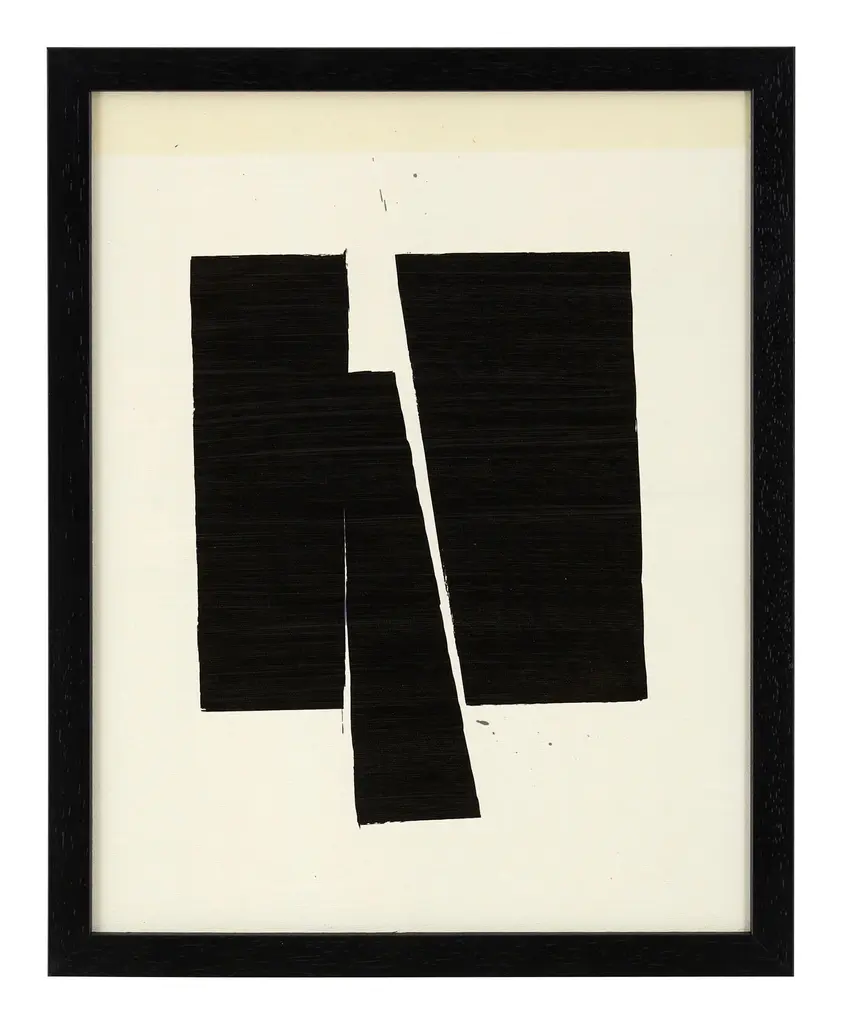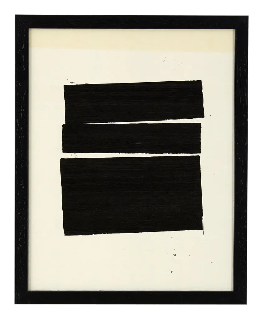 A stunning study of positive and negative space, our Chasm Print II will add instant visual interest to any empty wall. Simple yet striking in composition, this monochromatic piece features a single black square split in two along a horizontal diagonal line and surrounded by matching black paint splatters, which all pop against a solid ground in shades of cream. Printed on canvas artist board, it’s finished with hand-applied details for an authentic, one-of-a-kind feel. We’ve displayed it without glass in a sleek black wood frame in keeping with its minimalist aesthetic. The perfect finishing touch in any modern space, we love it hanging solo or alongside our other Chasm Prints for a gallery-worthy display. •printed on artist board •hand-applied details •black-finished wood frame •displayed without glass •attached hanging wire Dimensions •13.75"W x 1.25"D x 17"H