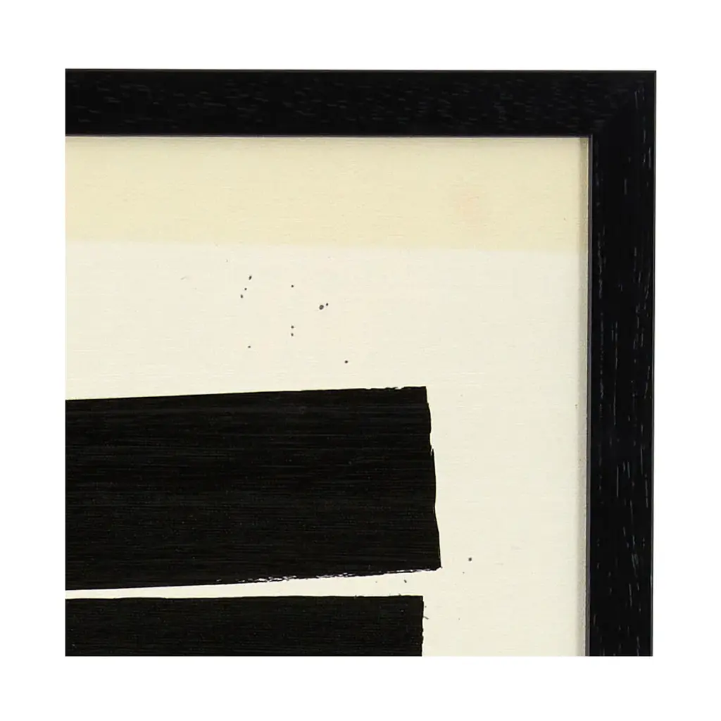 A stunning study of positive and negative space, our Chasm Print IV will add instant visual interest to any empty wall. Simple yet striking in composition, this monochromatic piece features a single black square split into three pieces along horizontal diagonal lines and surrounded by matching black paint splatters, which all pop against a solid ground in shades of cream. Printed on canvas artist board, it’s finished with hand-applied details for an authentic, one-of-a-kind feel. We’ve displayed it without glass in a sleek black wood frame in keeping with its minimalist aesthetic. The perfect finishing touch in any modern space, we love it hanging solo or alongside our other Chasm Prints for a gallery-worthy display. •printed on artist board •hand-applied details •black-finished wood frame •displayed without glass •attached hanging wire Dimensions •13.75"W x 1.25"D x 17"H