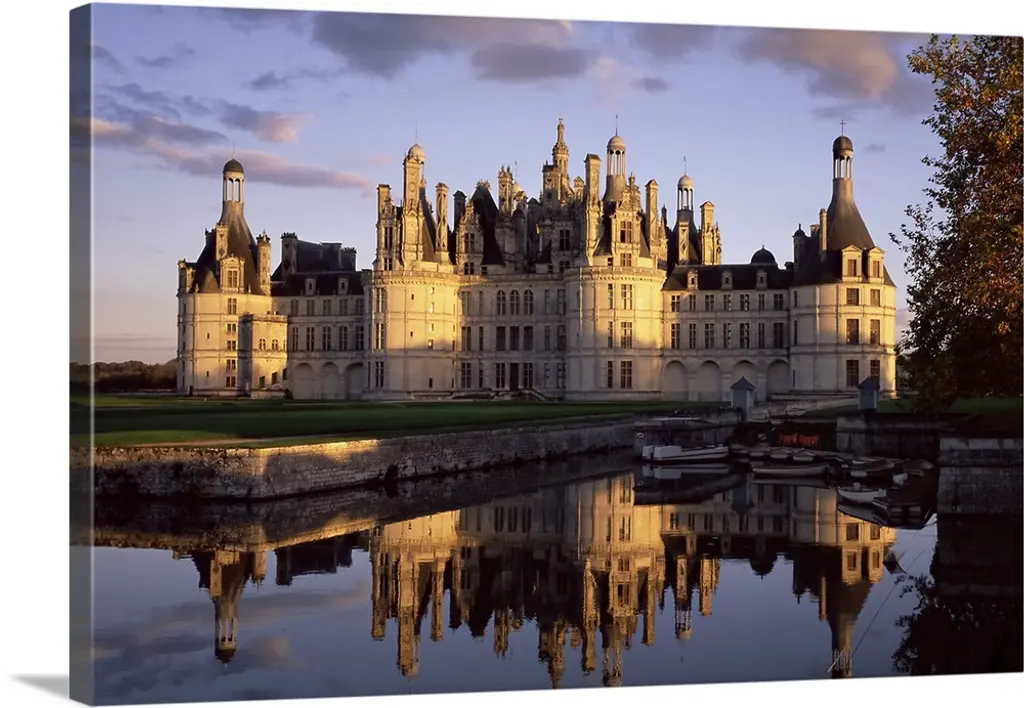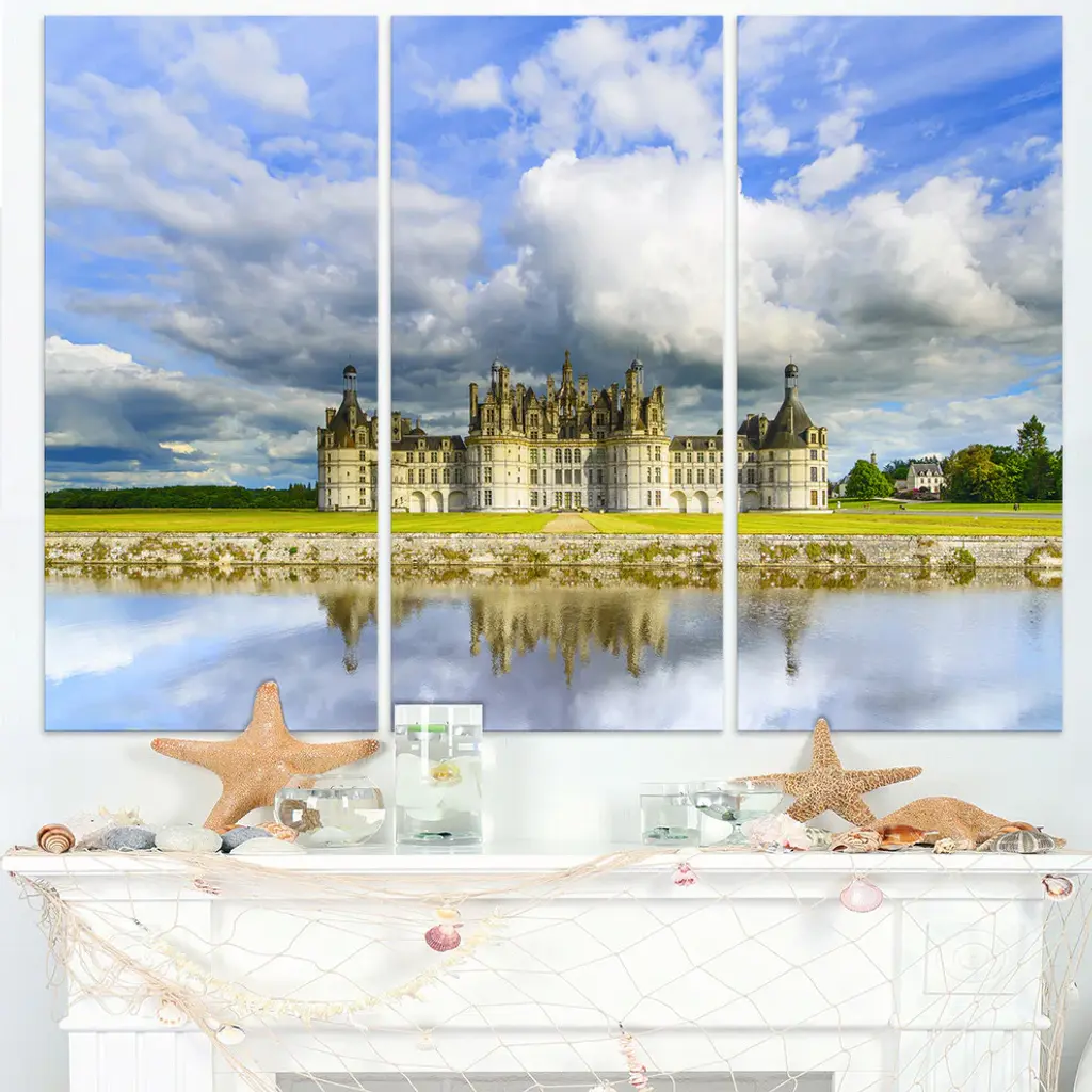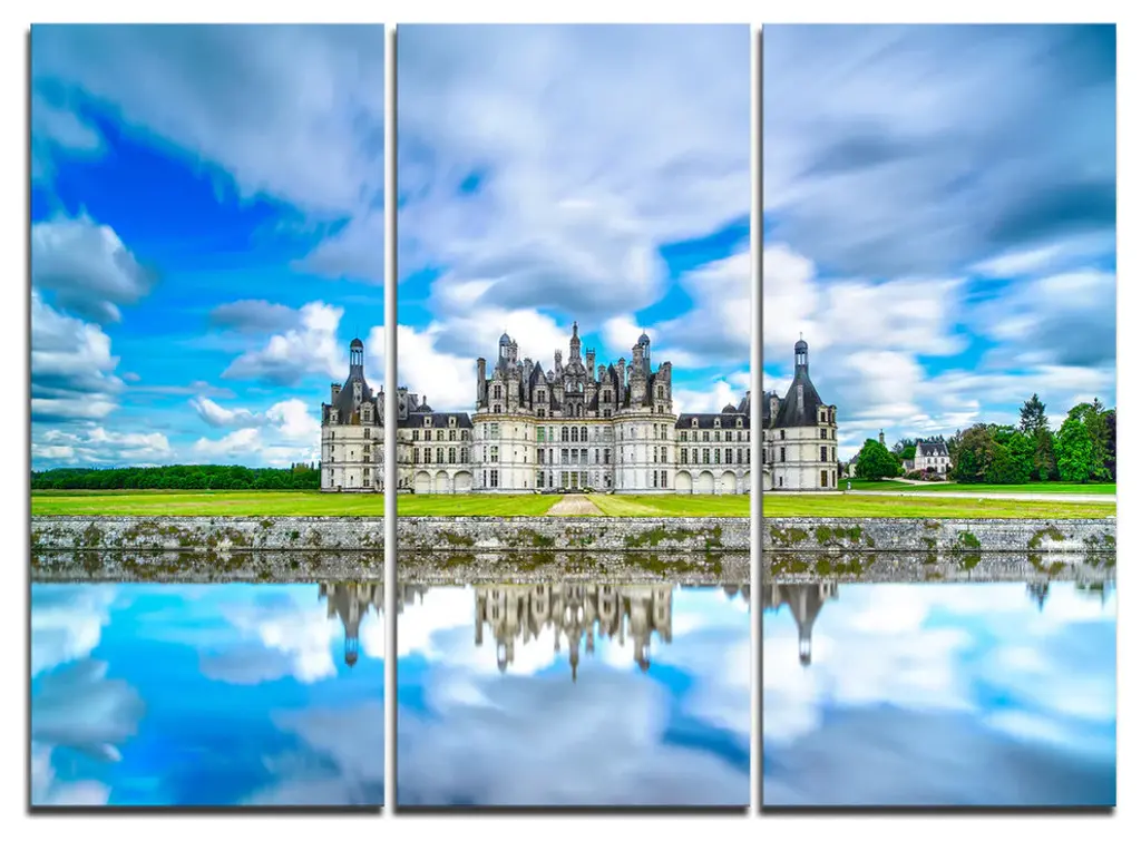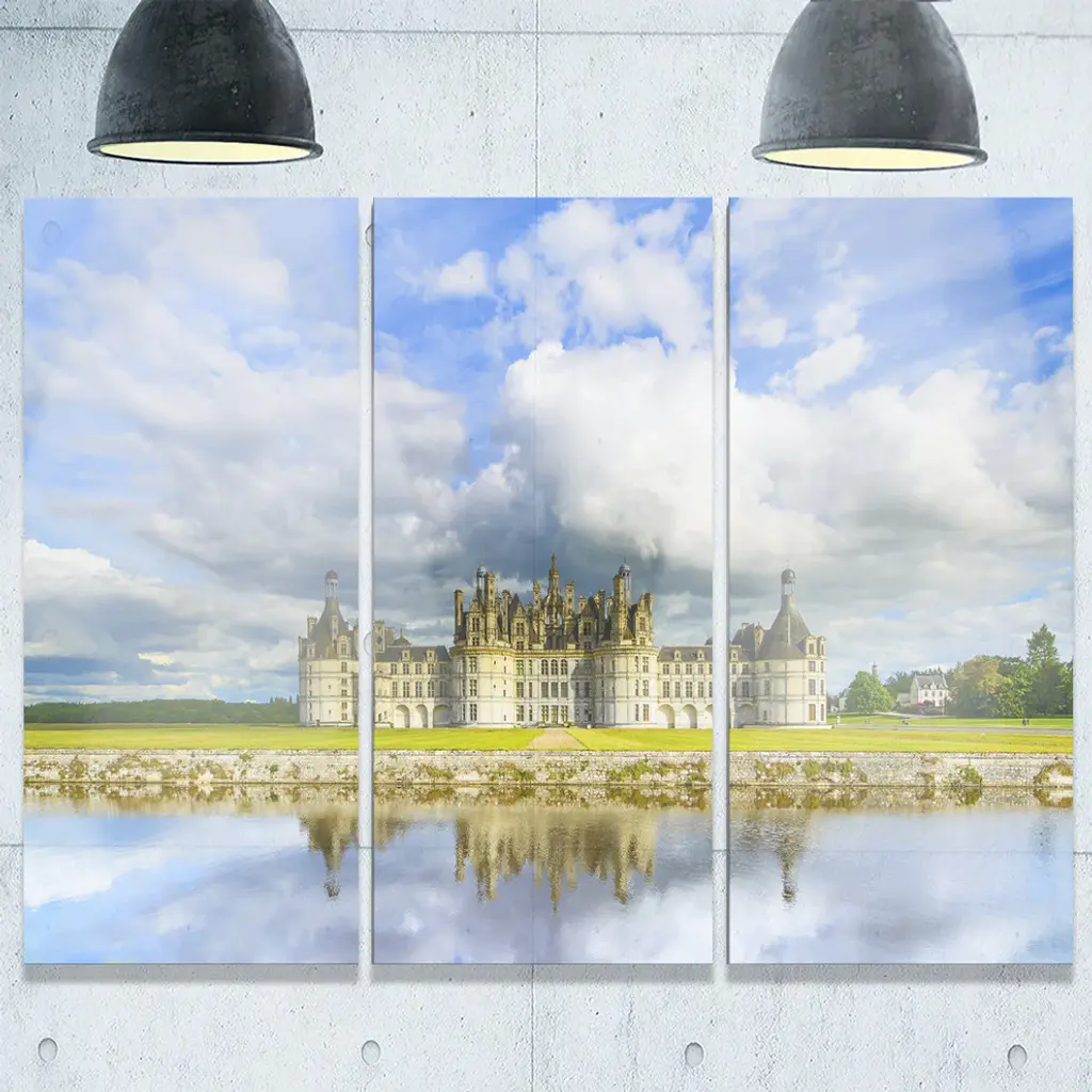 "Chateau De Chambord Castle And Reflection" Metal Wall Art, 3 Panels, 36"x28"