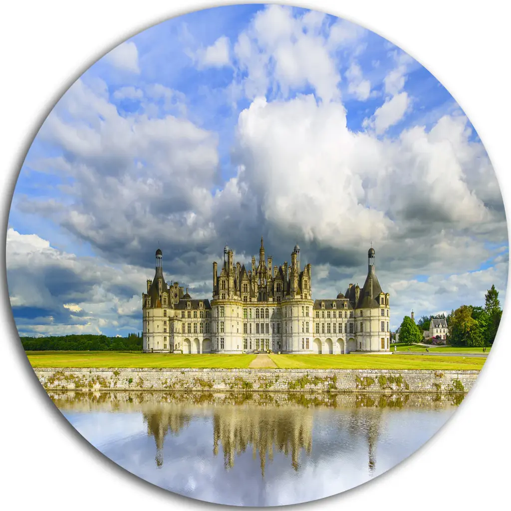 Bring contemporary abstraction to your home with this large 36W x 28H Metal Wall Art. This Chateau De Chambord Castle and Reflection Metal Artwork makes it the focal point of any room or office. - White gloss coating ensures colors are extra vibrant with light reflection.- Aluminum grade sheet metal with 1-inch mounting frame on the back giving the illusion that the artwork is floating on the wall.- Mounting brackets are included along with instructions.- High quality digital images are created directly into a glossy aluminum panel producing a stunning and captivating print into the glossy finish of the metal.- Water, fire and scratch resistant HD aluminum panels.- Looks better than any photo paper and guaranteed to last at least 20 years- Easy to clean with a microfiber cloth. Colors are far superior to regular canvas art. - Easy to hang