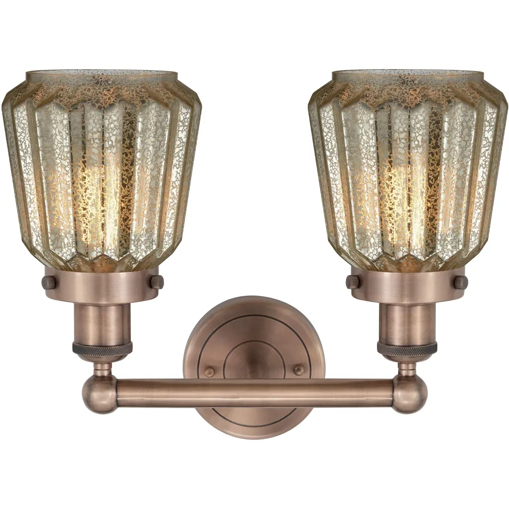 Chatham 2 Light 15.5 Inch Antique Copper Bath Vanity Light Wall Light In Mercury