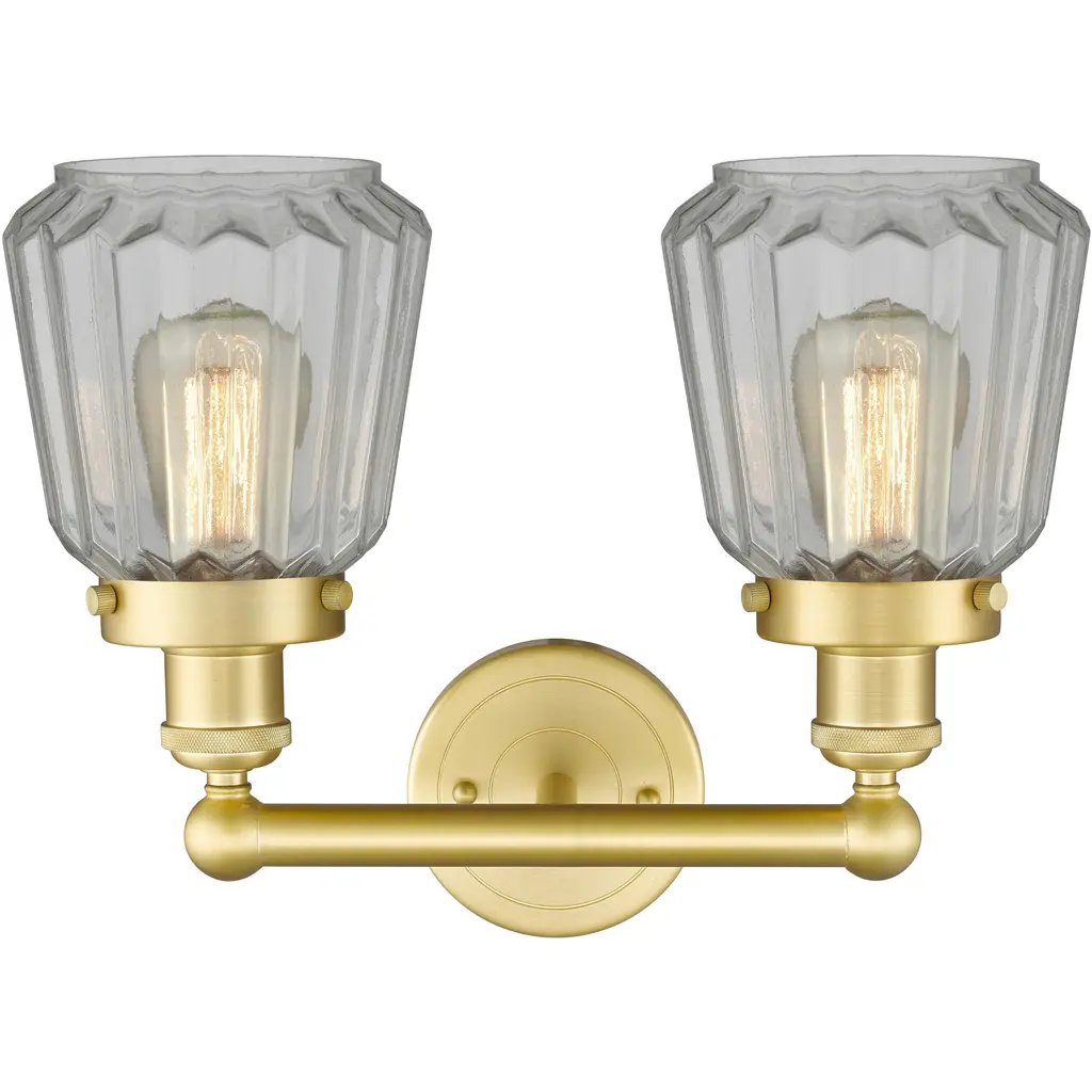 Chatham 2 Light 15.5 Inch Satin Gold Bath Vanity Light Wall Light In Clear