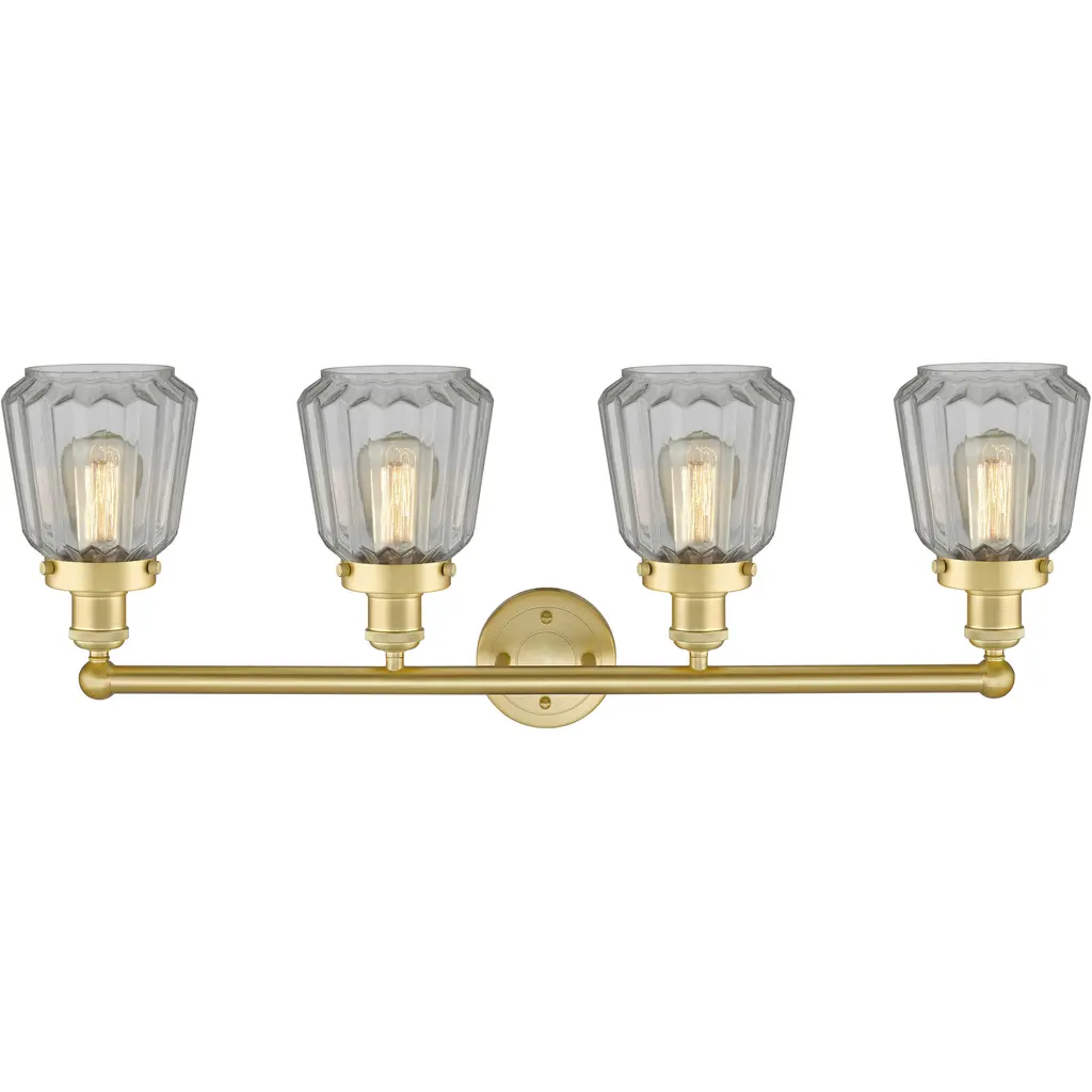 Chatham 4 Light 33.5 Inch Satin Gold Bath Vanity Light Wall Light In Clear Glass