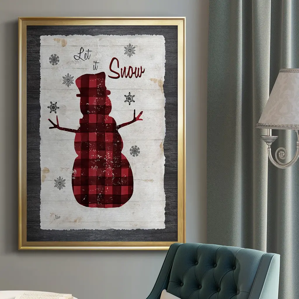 Checkered Snowman I Premium Framed Print - Ready to Hang A Premium Framed Print created to last. Framed in distressed wood and available in an array of sizes and colors Featuring a beveled a solid wood stretcher bar, each piece comes ready to hand 4 SIZES AVAILABLE 30.5''X42.5'' - Overall Size 26.5'X36.5'' - Overall Size 22.5''x30.5'' - Overall Size 18.5''x24.5'' - Overall Size Each piece is made to order. Each piece comes with hanging hardware. Made in the USA Ready to Hang