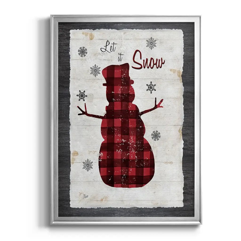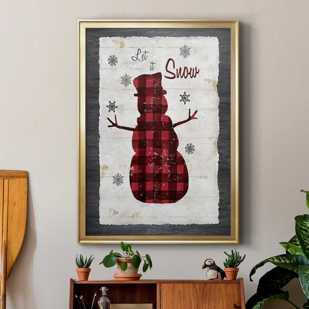 Checkered Snowman I Premium Framed Print - Ready to Hang A Premium Framed Print created to last. Framed in distressed wood and available in an array of sizes and colors Featuring a beveled a solid wood stretcher bar, each piece comes ready to hand 4 SIZES AVAILABLE 30.5''X42.5'' - Overall Size 26.5'X36.5'' - Overall Size 22.5''x30.5'' - Overall Size 18.5''x24.5'' - Overall Size Each piece is made to order. Each piece comes with hanging hardware. Made in the USA Ready to Hang