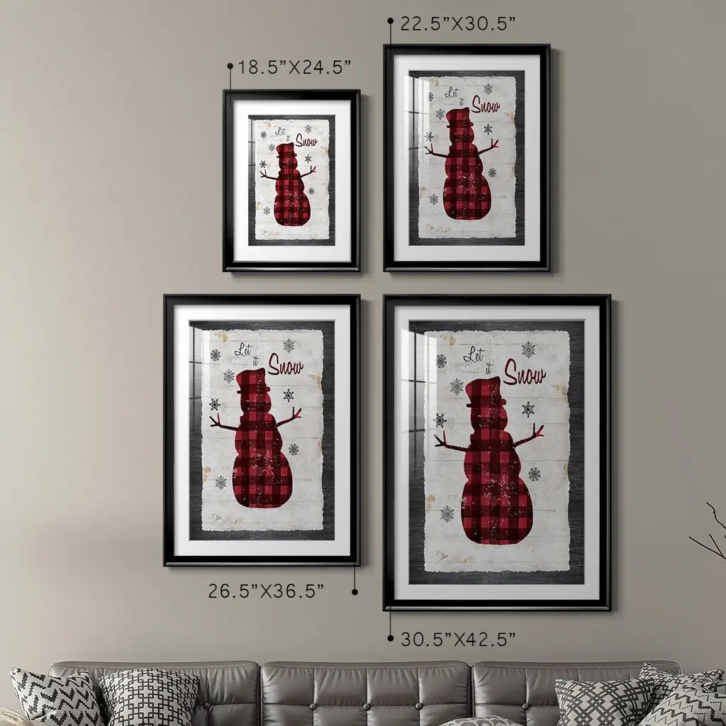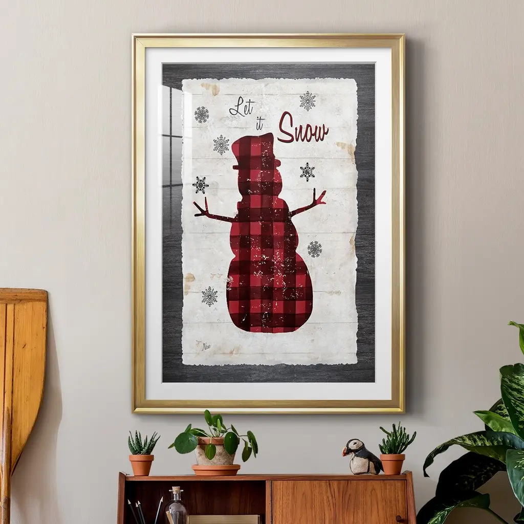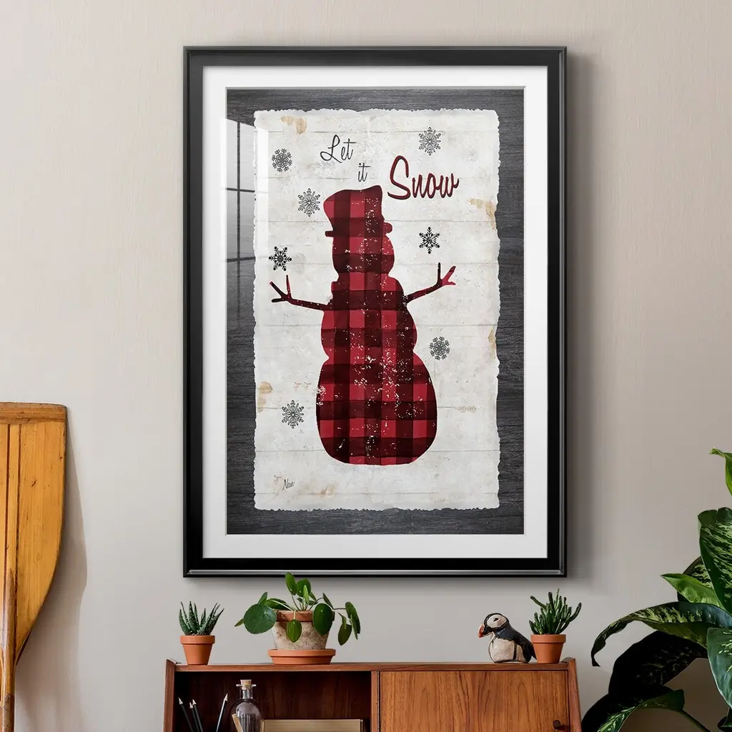 Checkered Snowman I Premium Framed Print - Ready to Hang A Premium Framed Print created to last. Framed in distressed wood and available in an array of sizes and colors Featuring a beveled a solid wood stretcher bar, each piece comes ready to hand 4 SIZES AVAILABLE 30.5''X42.5'' - Overall Size 26.5'X36.5'' - Overall Size 22.5''x30.5'' - Overall Size 18.5''x24.5'' - Overall Size Each piece is made to order. Each piece comes with hanging hardware. Made in the USA Ready to Hang Giclee Paper Print Acrylic Glass Beveled Matt Board