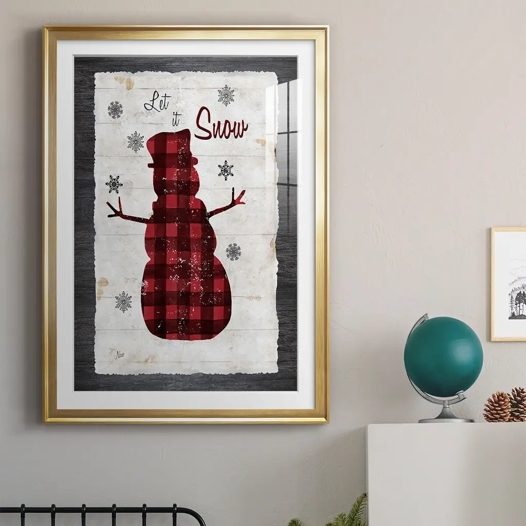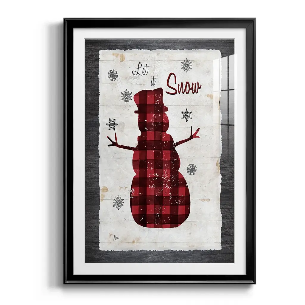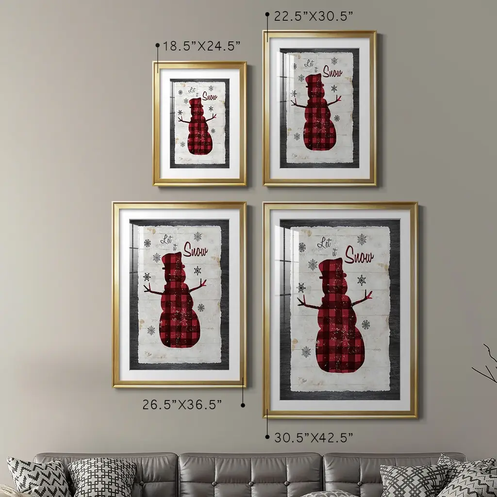 Checkered Snowman I Premium Framed Print - Ready to Hang A Premium Framed Print created to last. Framed in distressed wood and available in an array of sizes and colors Featuring a beveled a solid wood stretcher bar, each piece comes ready to hand 4 SIZES AVAILABLE 30.5''X42.5'' - Overall Size 26.5'X36.5'' - Overall Size 22.5''x30.5'' - Overall Size 18.5''x24.5'' - Overall Size Each piece is made to order. Each piece comes with hanging hardware. Made in the USA Ready to Hang Giclee Paper Print Acrylic Glass Beveled Matt Board