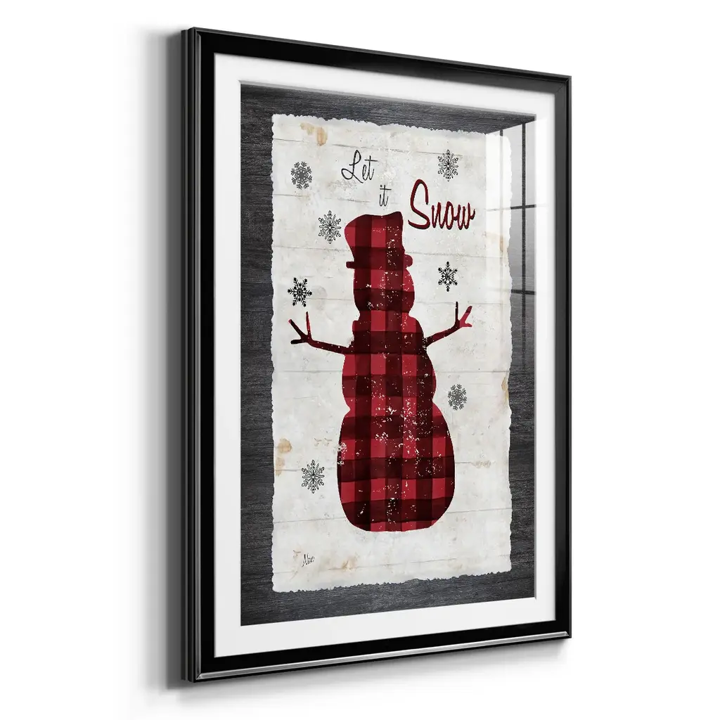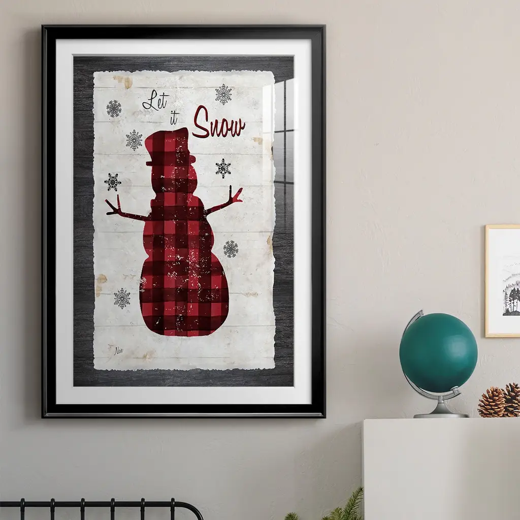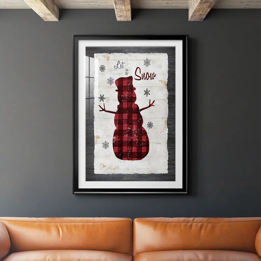 Checkered Snowman I Premium Framed Print - Ready to Hang A Premium Framed Print created to last. Framed in distressed wood and available in an array of sizes and colors Featuring a beveled a solid wood stretcher bar, each piece comes ready to hand 4 SIZES AVAILABLE 30.5''X42.5'' - Overall Size 26.5'X36.5'' - Overall Size 22.5''x30.5'' - Overall Size 18.5''x24.5'' - Overall Size Each piece is made to order. Each piece comes with hanging hardware. Made in the USA Ready to Hang Giclee Paper Print Acrylic Glass Beveled Matt Board