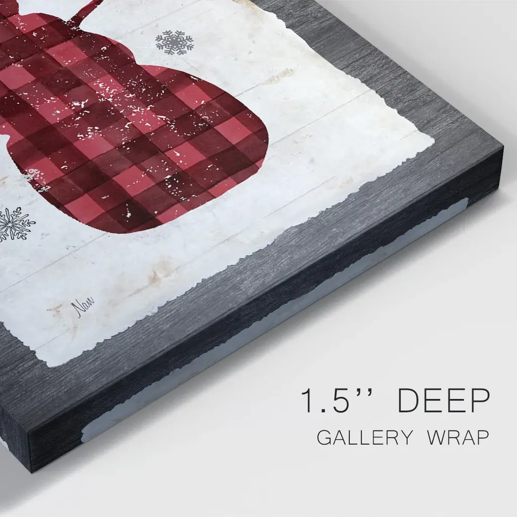 Checkered Snowman I Premium Gallery Wrapped Canvas - Ready to Hang A premium hand stretched gallery wrapped canvas print created to last. Featuring a beveled a solid wood stretcher bar, each piece comes ready to hand 6 SIZES AVAILABLE 8''X12'' - Overall Size 12''X18'' - Overall Size 18''X27'' - Overall Size 24''x36'' - Overall Size 32''x48'' - Overall Size 40''x60'' - Overall Size Each piece is made to order. Built to Last Each piece comes ready to hang Solid wood stretcher Fade and Water resistant Made domestically