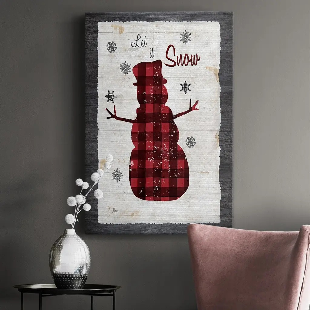 Checkered Snowman I Premium Gallery Wrapped Canvas - Ready to Hang A premium hand stretched gallery wrapped canvas print created to last. Featuring a beveled a solid wood stretcher bar, each piece comes ready to hand 6 SIZES AVAILABLE 8''X12'' - Overall Size 12''X18'' - Overall Size 18''X27'' - Overall Size 24''x36'' - Overall Size 32''x48'' - Overall Size 40''x60'' - Overall Size Each piece is made to order. Built to Last Each piece comes ready to hang Solid wood stretcher Fade and Water resistant Made domestically