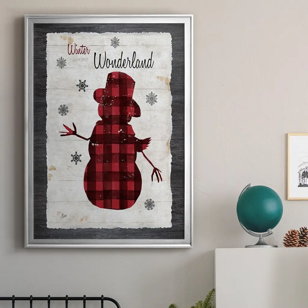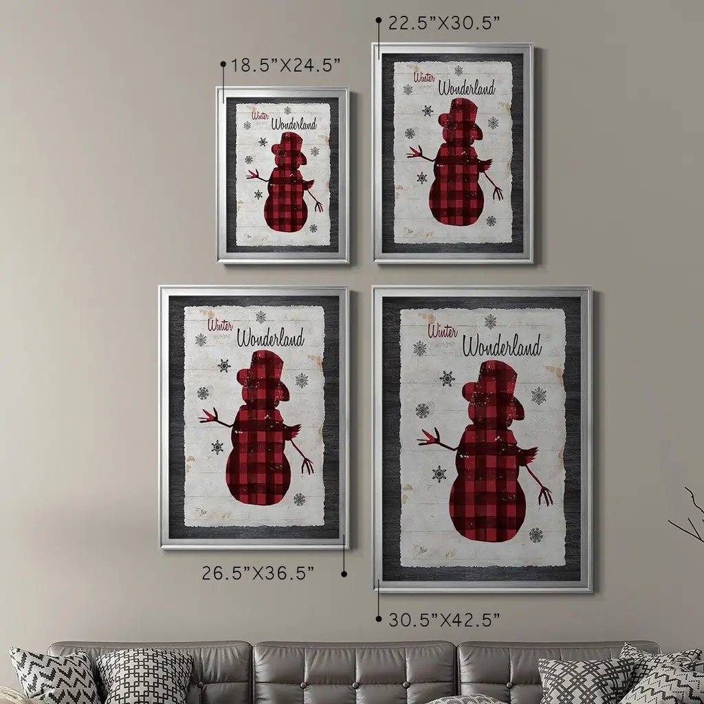 Checkered Snowman II Premium Framed Print - Ready to Hang A Premium Framed Print created to last. Framed in distressed wood and available in an array of sizes and colors Featuring a beveled a solid wood stretcher bar, each piece comes ready to hand 4 SIZES AVAILABLE 30.5''X42.5'' - Overall Size 26.5'X36.5'' - Overall Size 22.5''x30.5'' - Overall Size 18.5''x24.5'' - Overall Size Each piece is made to order. Each piece comes with hanging hardware. Made in the USA Ready to Hang