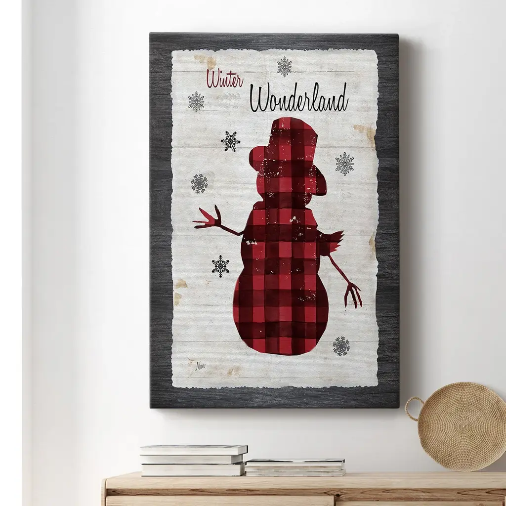 Checkered Snowman II Premium Gallery Wrapped Canvas - Ready to Hang A premium hand stretched gallery wrapped canvas print created to last. Featuring a beveled a solid wood stretcher bar, each piece comes ready to hand 6 SIZES AVAILABLE 8''X12'' - Overall Size 12''X18'' - Overall Size 18''X27'' - Overall Size 24''x36'' - Overall Size 32''x48'' - Overall Size 40''x60'' - Overall Size Each piece is made to order. Built to Last Each piece comes ready to hang Solid wood stretcher Fade and Water resistant Made domestically