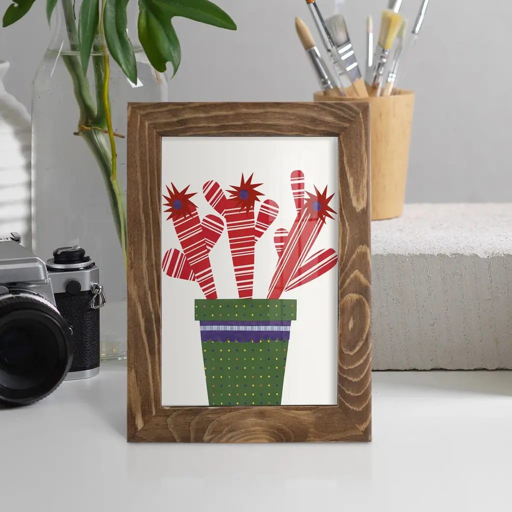 Cheerful Succulent V -EZ SWITCH Framed Print w/glass-Cherry Red A delightful, framed print. Featuring a solid wood frame with real wood glass. This premium print is giclee quality. In addition, every frame features a removable back and table top stand. This allows you to change your art in the future or to just stand the art on a table for a new look. We are sure you'll enjoy our new series of EZ SWITCH Framed Art. Solid Wood Frame Real Glass Removable / Replaceable Art Built in Tabletop Stand Sizes range from 4x6 up to 12x15 - buy just one or pair them up as sets as you see fit.