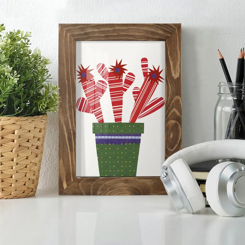 Cheerful Succulent V -EZ SWITCH Framed Print w/glass-Cherry Red A delightful, framed print. Featuring a solid wood frame with real wood glass. This premium print is giclee quality. In addition, every frame features a removable back and table top stand. This allows you to change your art in the future or to just stand the art on a table for a new look. We are sure you'll enjoy our new series of EZ SWITCH Framed Art. Solid Wood Frame Real Glass Removable / Replaceable Art Built in Tabletop Stand Sizes range from 4x6 up to 12x15 - buy just one or pair them up as sets as you see fit.
