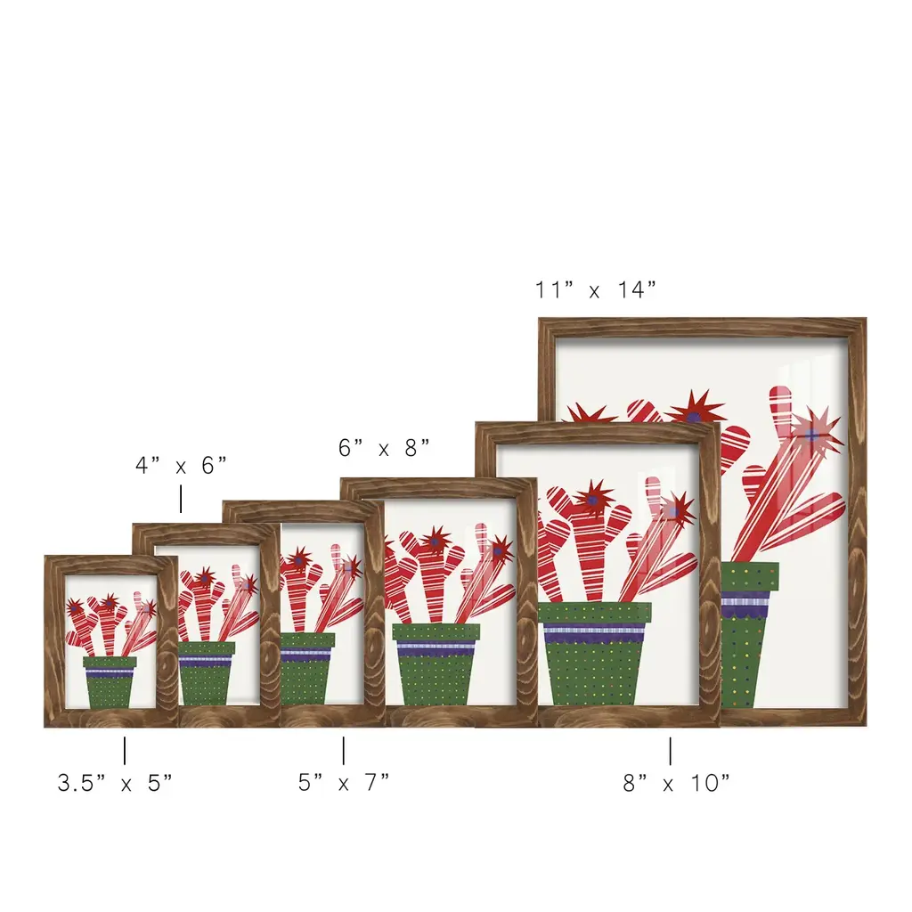 Cheerful Succulent V -EZ SWITCH Framed Print w/glass-Cherry Red A delightful, framed print. Featuring a solid wood frame with real wood glass. This premium print is giclee quality. In addition, every frame features a removable back and table top stand. This allows you to change your art in the future or to just stand the art on a table for a new look. We are sure you'll enjoy our new series of EZ SWITCH Framed Art. Solid Wood Frame Real Glass Removable / Replaceable Art Built in Tabletop Stand Sizes range from 4x6 up to 12x15 - buy just one or pair them up as sets as you see fit.