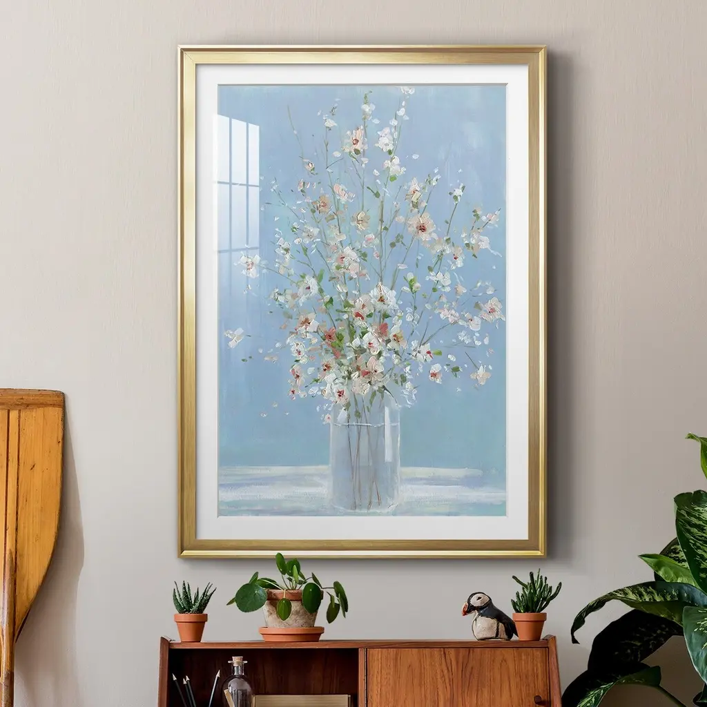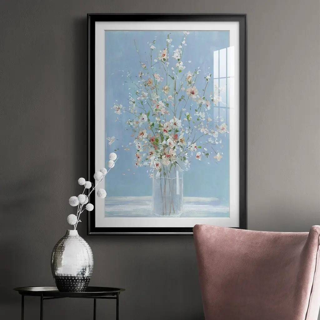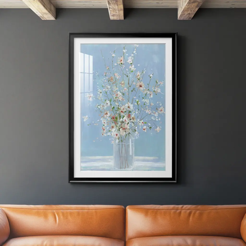 Cherry Blossom Arrangement Premium Framed Print - Ready to Hang A Premium Framed Print created to last. Framed in distressed wood and available in an array of sizes and colors Featuring a beveled a solid wood stretcher bar, each piece comes ready to hand 4 SIZES AVAILABLE 30.5''X42.5'' - Overall Size 26.5'X36.5'' - Overall Size 22.5''x30.5'' - Overall Size 18.5''x24.5'' - Overall Size Each piece is made to order. Each piece comes with hanging hardware. Made in the USA Ready to Hang Giclee Paper Print Acrylic Glass Beveled Matt Board