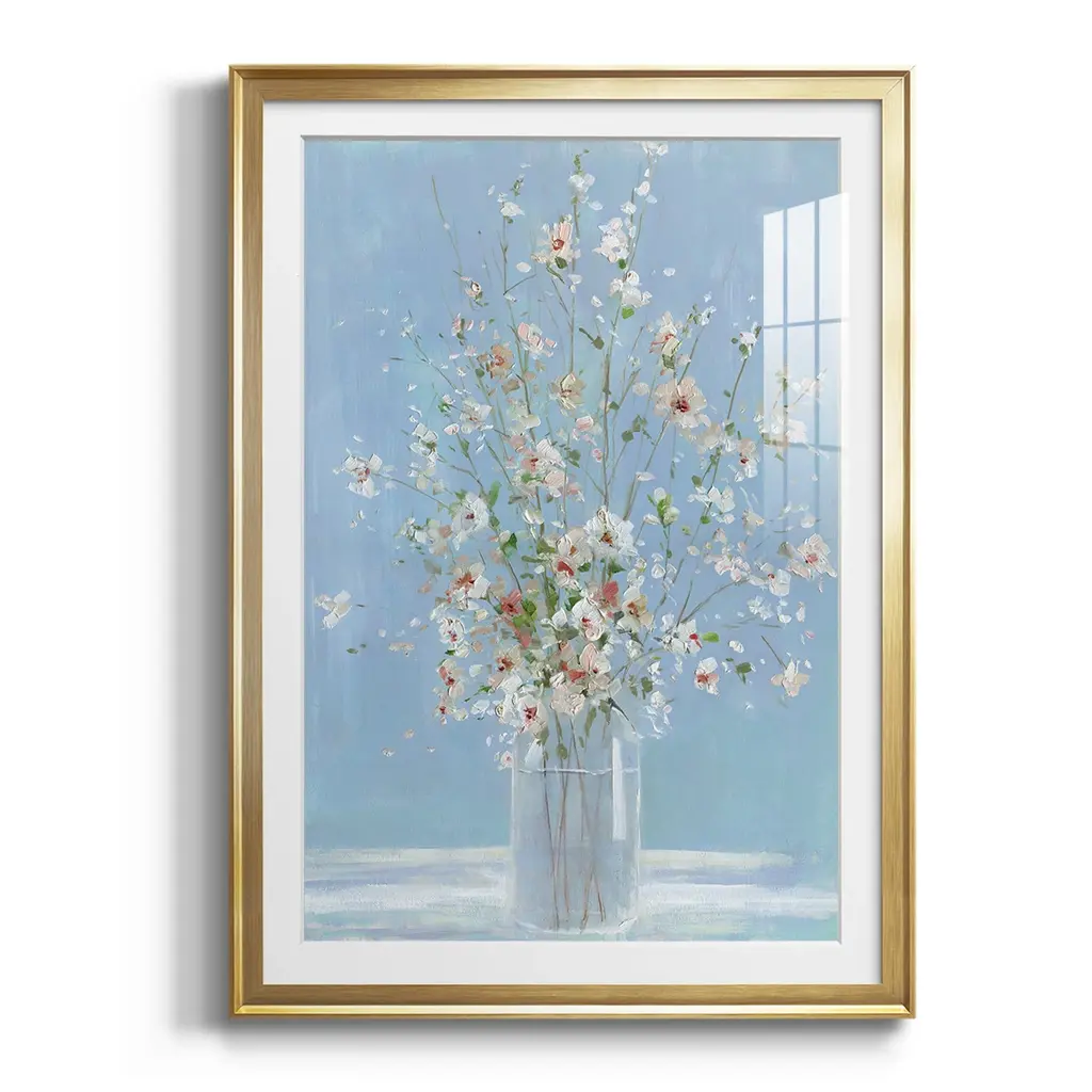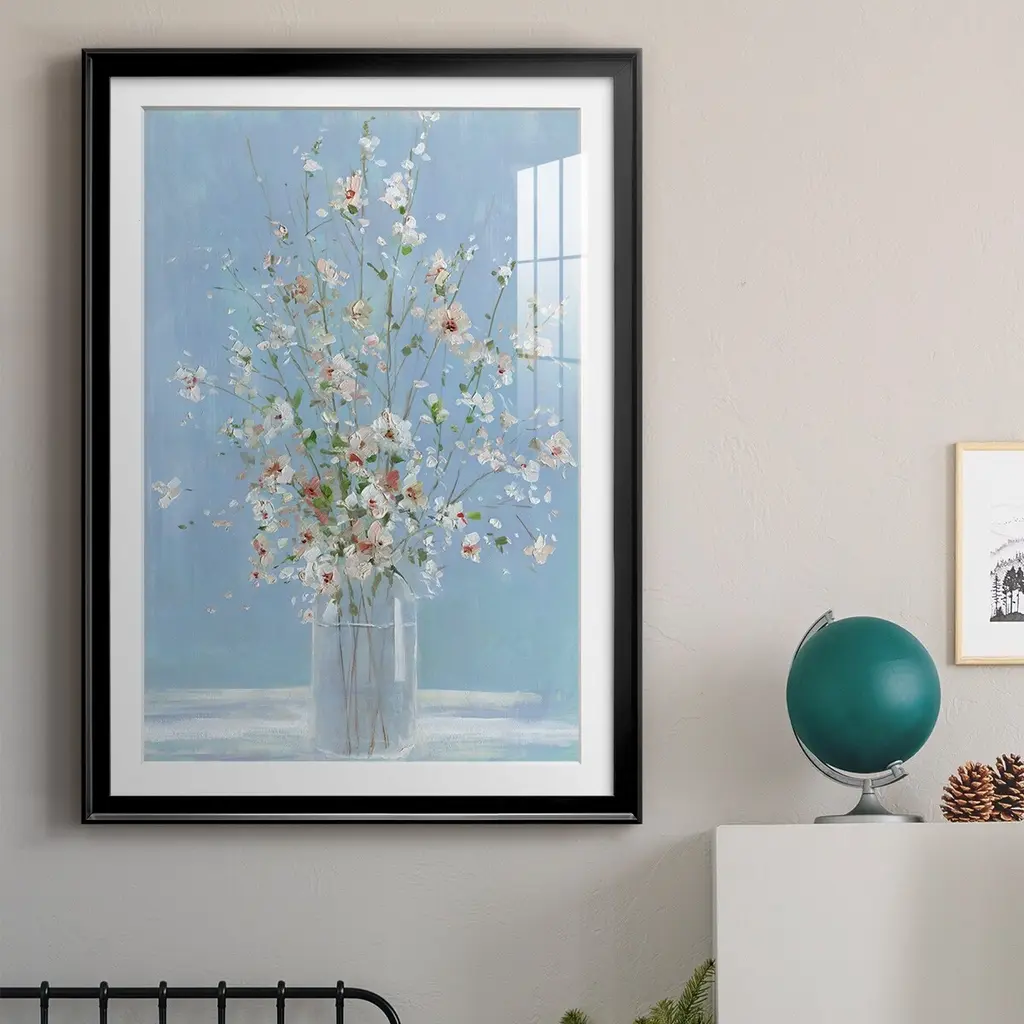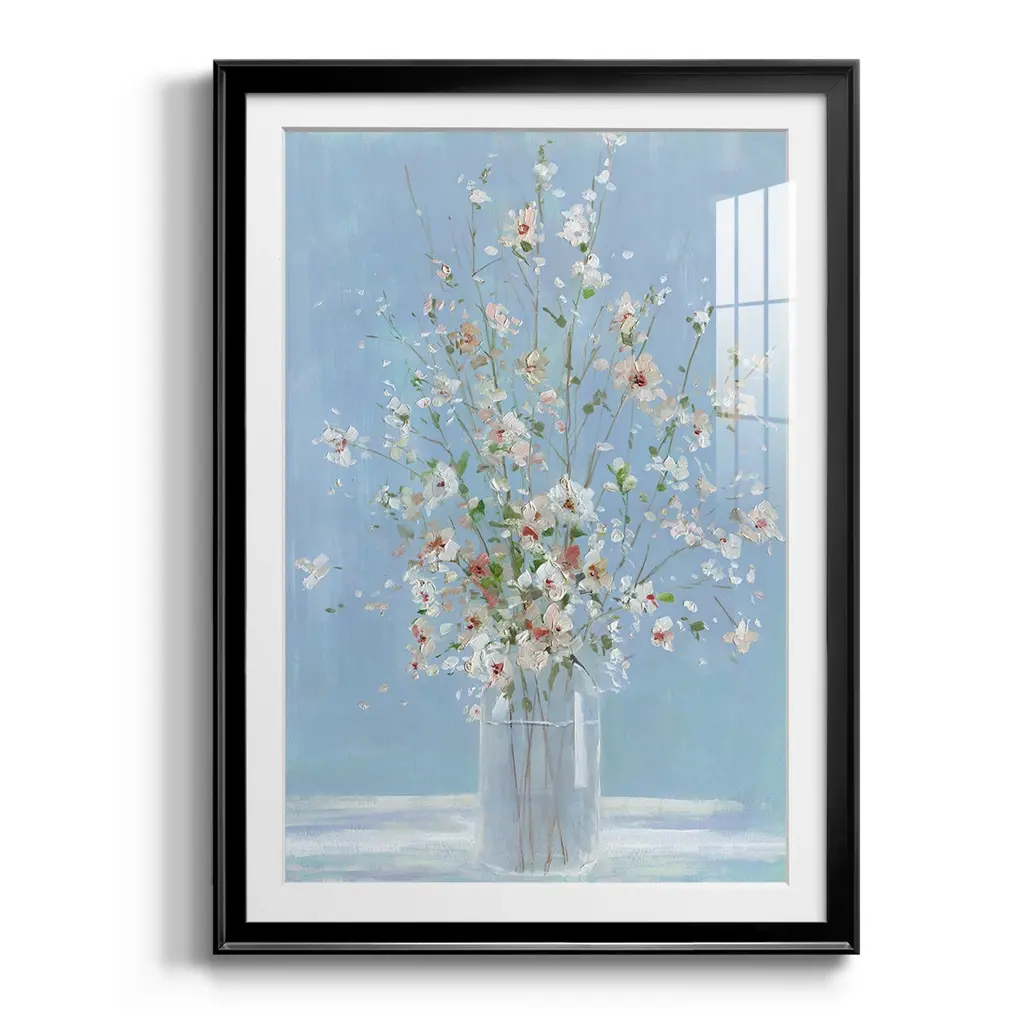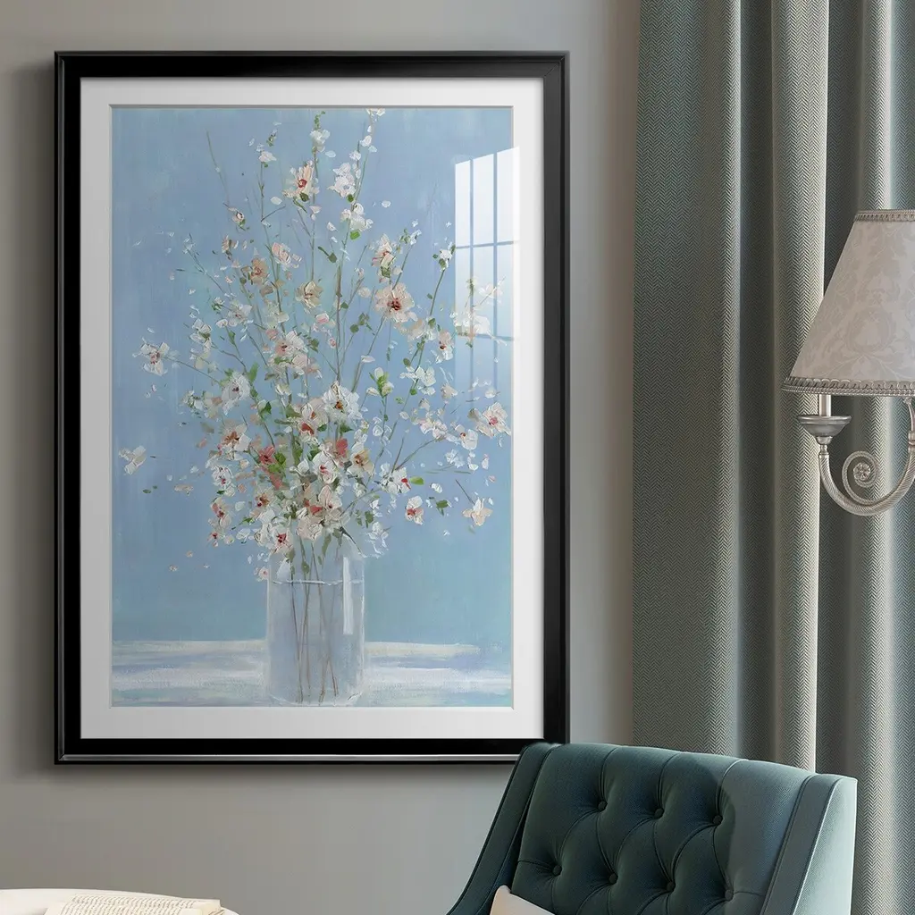 Cherry Blossom Arrangement Premium Framed Print - Ready to Hang A Premium Framed Print created to last. Framed in distressed wood and available in an array of sizes and colors Featuring a beveled a solid wood stretcher bar, each piece comes ready to hand 4 SIZES AVAILABLE 30.5''X42.5'' - Overall Size 26.5'X36.5'' - Overall Size 22.5''x30.5'' - Overall Size 18.5''x24.5'' - Overall Size Each piece is made to order. Each piece comes with hanging hardware. Made in the USA Ready to Hang Giclee Paper Print Acrylic Glass Beveled Matt Board