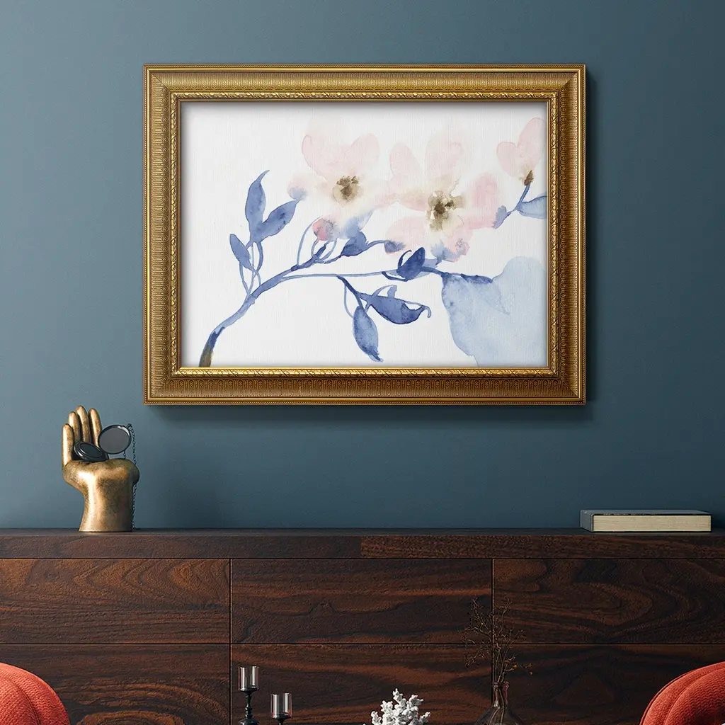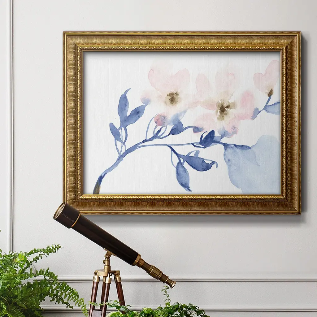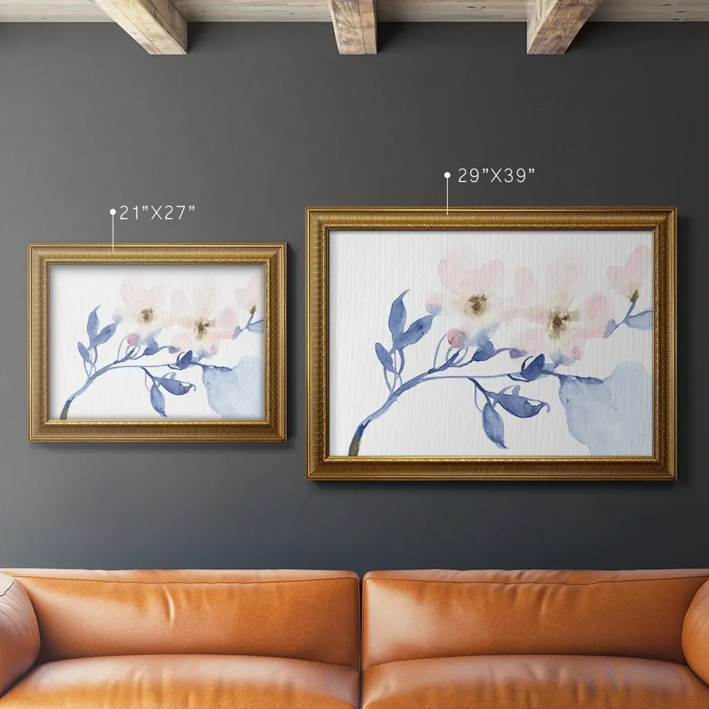 Cherry Blossom Light II Premium Framed Canvas- Ready to Hang A Premium Framed Canvas created to last. Framed in distressed wood and available in an array of sizes and colors Featuring a beveled a solid wood stretcher bar, each piece comes ready to hand 3 SIZES AVAILABLE 16''X20'' - Overall Size 18'X27'' - Overall Size 24''x36'' - Overall Size Each piece is made to order. Each piece comes with hanging hardware. Made in the USA Ready to Hang Giclee Paper Print Acrylic Glass Beveled Matt Board