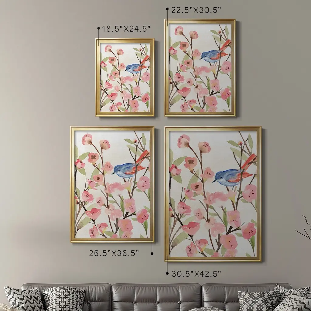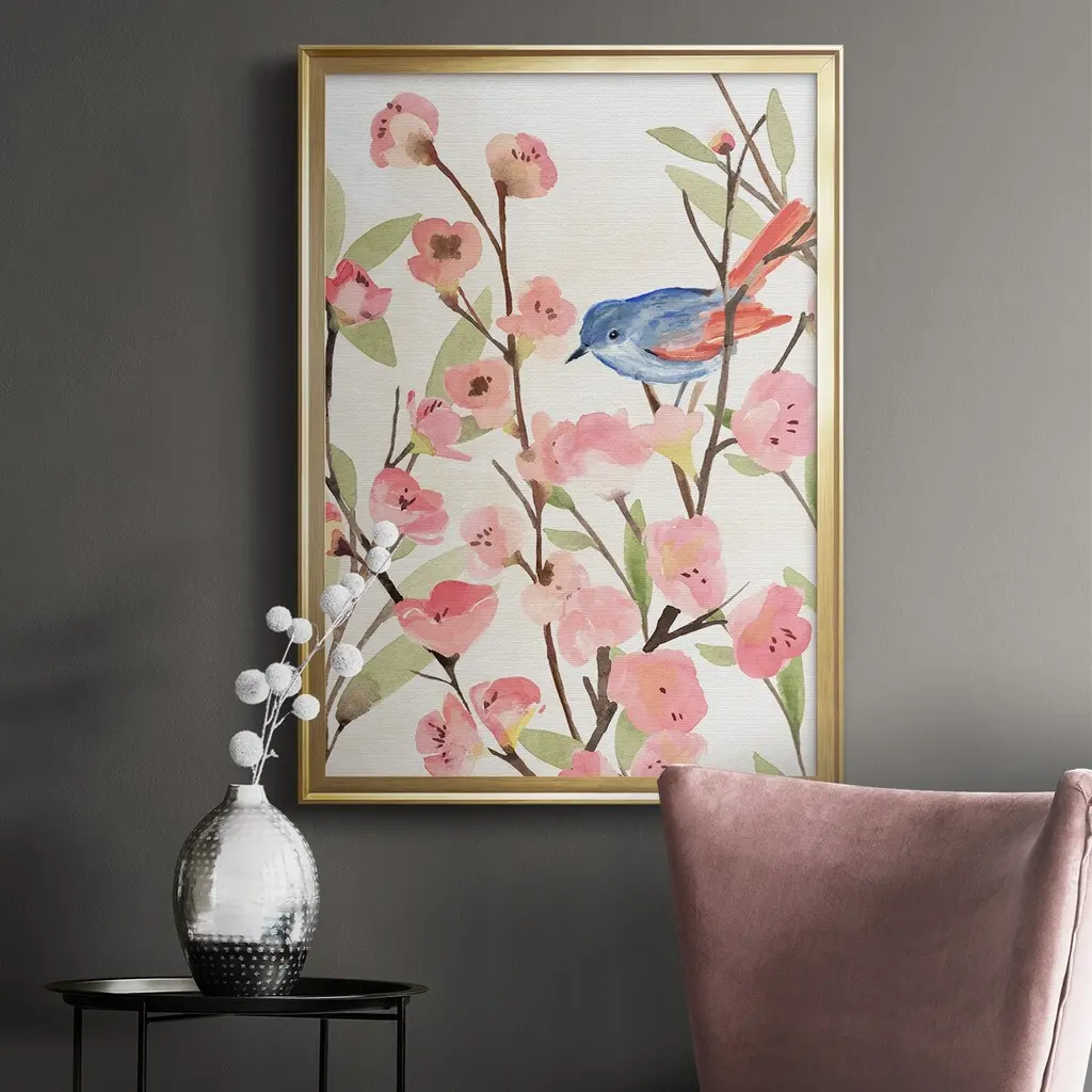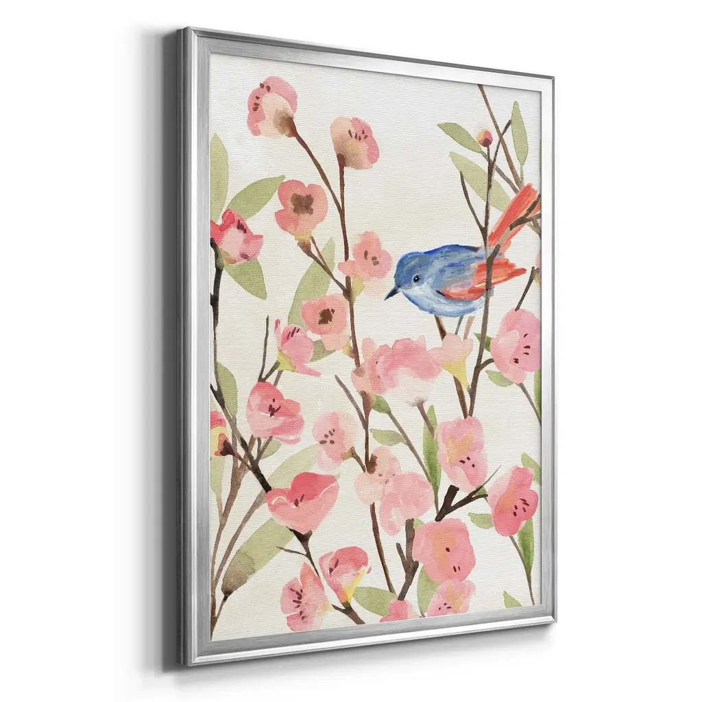 Cherry Blossom Perch II Premium Framed Print - Ready to Hang A Premium Framed Print created to last. Framed in distressed wood and available in an array of sizes and colors Featuring a beveled a solid wood stretcher bar, each piece comes ready to hand 4 SIZES AVAILABLE 30.5''X42.5'' - Overall Size 26.5'X36.5'' - Overall Size 22.5''x30.5'' - Overall Size 18.5''x24.5'' - Overall Size Each piece is made to order. Each piece comes with hanging hardware. Made in the USA Ready to Hang