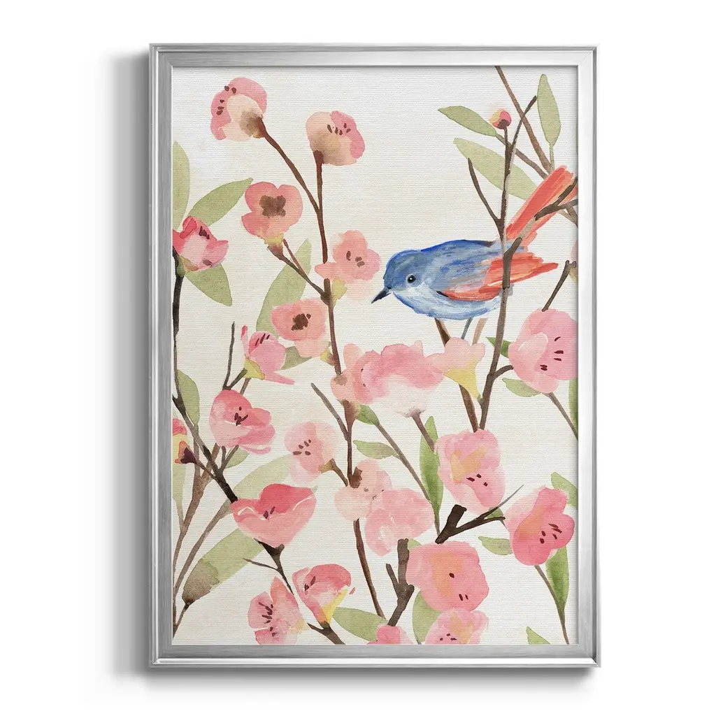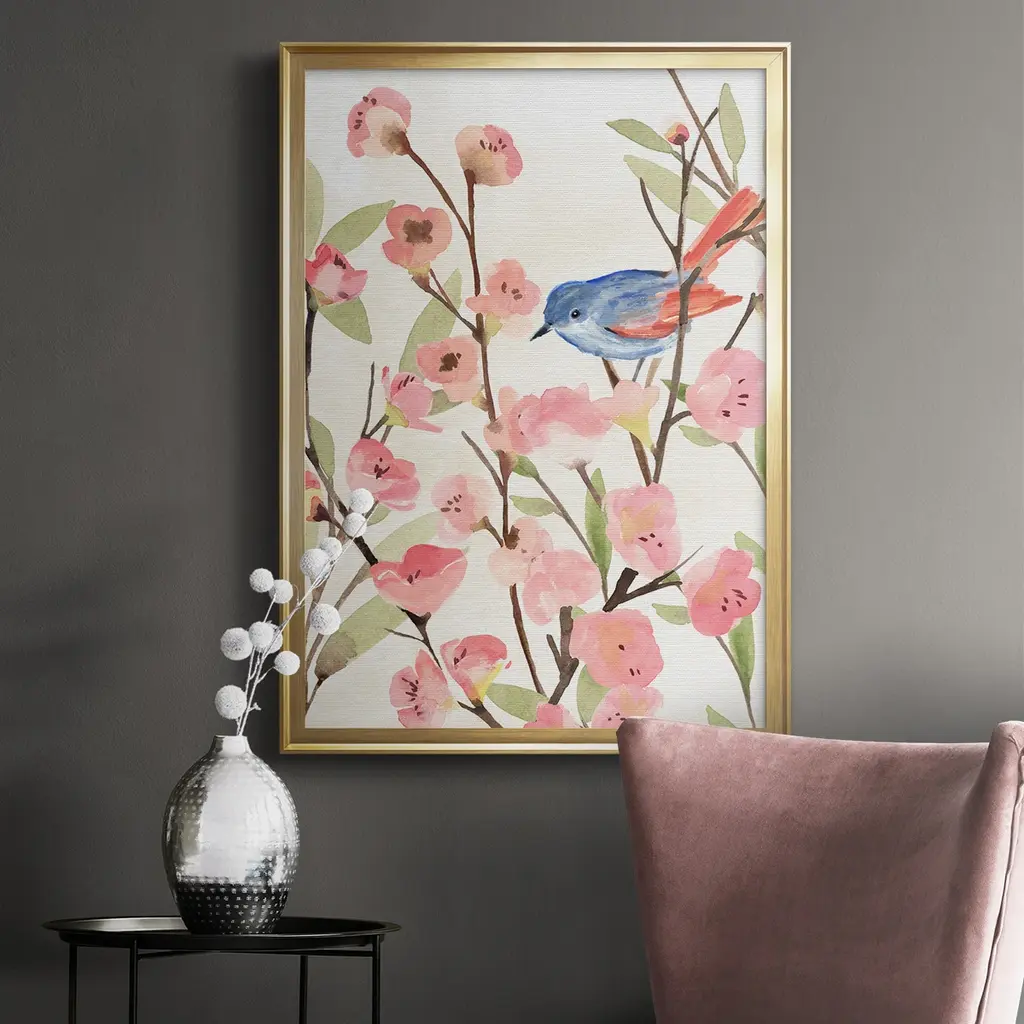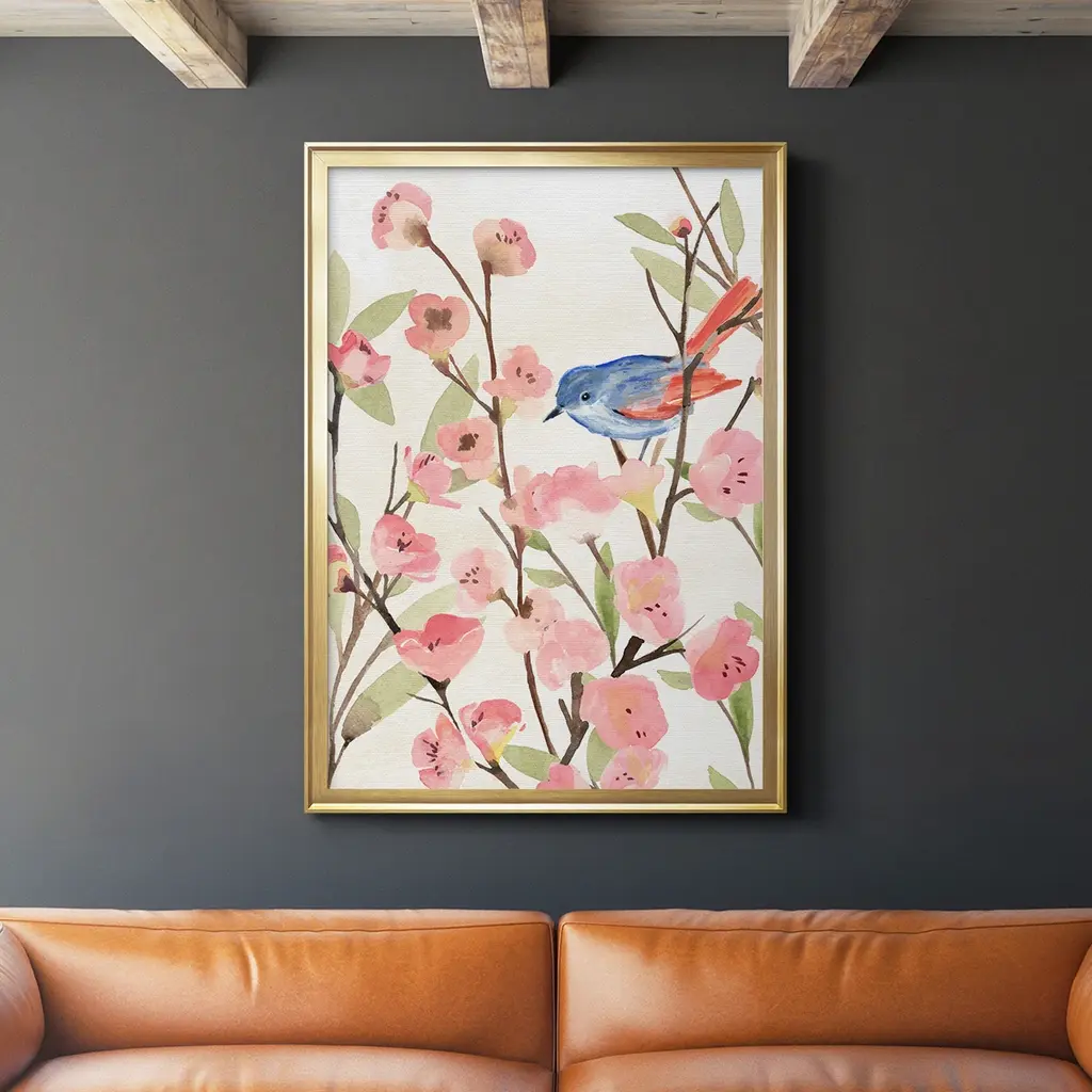 Cherry Blossom Perch II Premium Framed Print - Ready to Hang A Premium Framed Print created to last. Framed in distressed wood and available in an array of sizes and colors Featuring a beveled a solid wood stretcher bar, each piece comes ready to hand 4 SIZES AVAILABLE 30.5''X42.5'' - Overall Size 26.5'X36.5'' - Overall Size 22.5''x30.5'' - Overall Size 18.5''x24.5'' - Overall Size Each piece is made to order. Each piece comes with hanging hardware. Made in the USA Ready to Hang