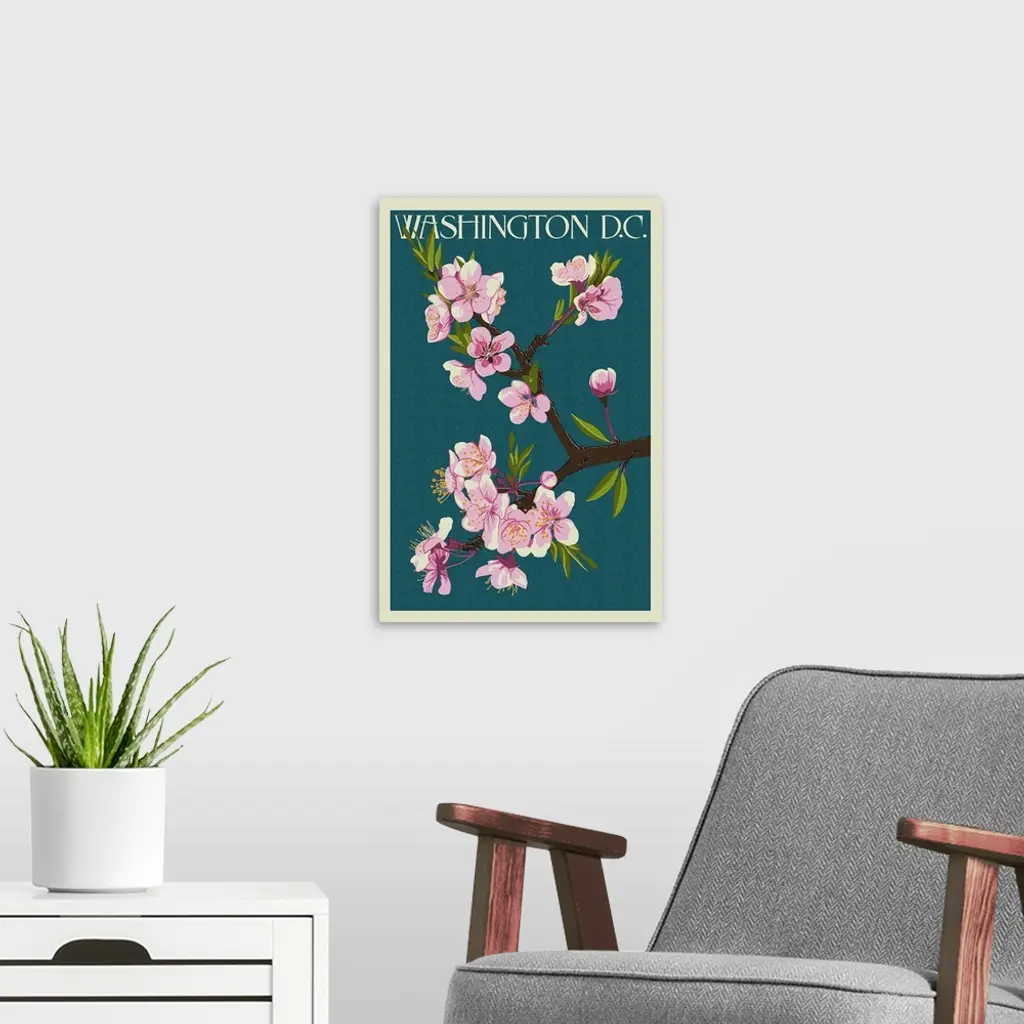 Cherry Blossoms - Washington DC: Retro Travel Poster wall art for home and office decor. Discover canvas art prints, photos, mural, big canvas art and framed wall art in GreatBigCanvas.com's varied collections.
