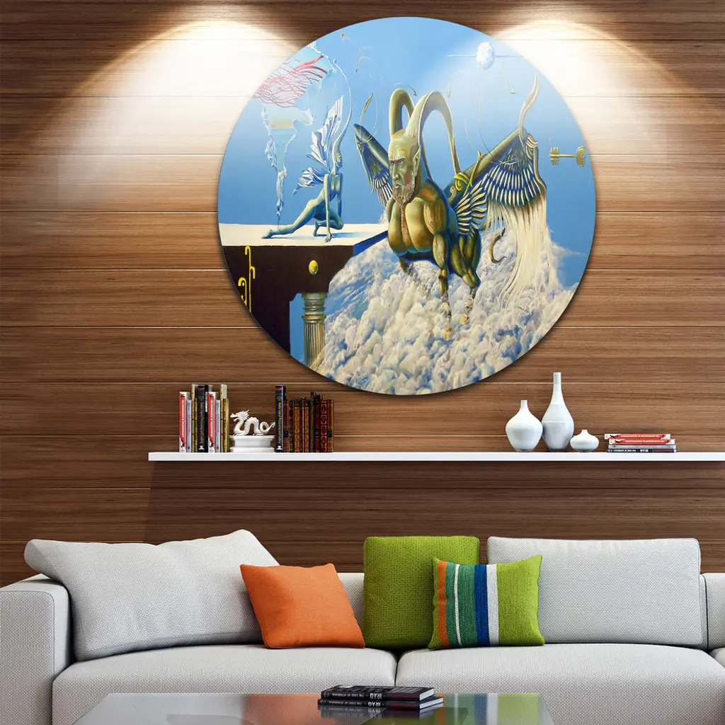 Bring Contemporary Abstraction to your home with this large Circle Metal wall art. This Cherubim Metal Artwork makes it the focal point of any room or office. - White Gloss Coating ensures colors are extra vibrant with light reflection.- Aluminum grade Sheet Metal with 1 inch mounting frame on the back giving the illusion that the artwork is floating on the wall..- Mounting Brackets are included along with instructions.- High Quality Digital images are created directly into a glossy aluminum panel producing a stunning and captivating print into the glossy finish of the metal.- Water, Fire and Scratch resistant HD Aluminum panels.- Looks better than any photo paper and guaranteed to last at least 20 years- Easy to clean with a microfiber cloth. Colors are far superior to regular Canvas Art. - Easy to Hang