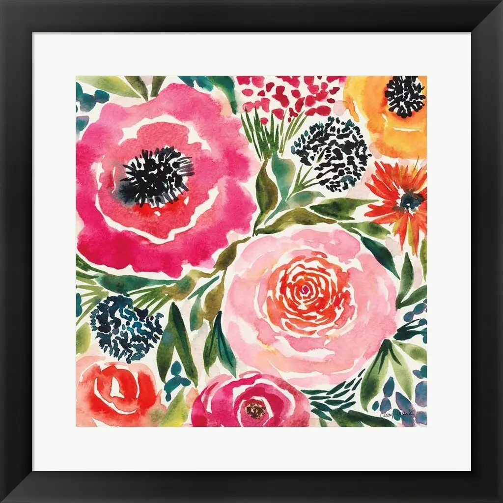 Summer Petals III by Cheryl Warrick is a high quality piece of framed artwork. The finished size of this piece is 19.5" X 19.5". It has a Slim Black Flat with Satin Finish frame, is single matted and finished with high quality Glass. 100% Satisfaction Guaranteed.