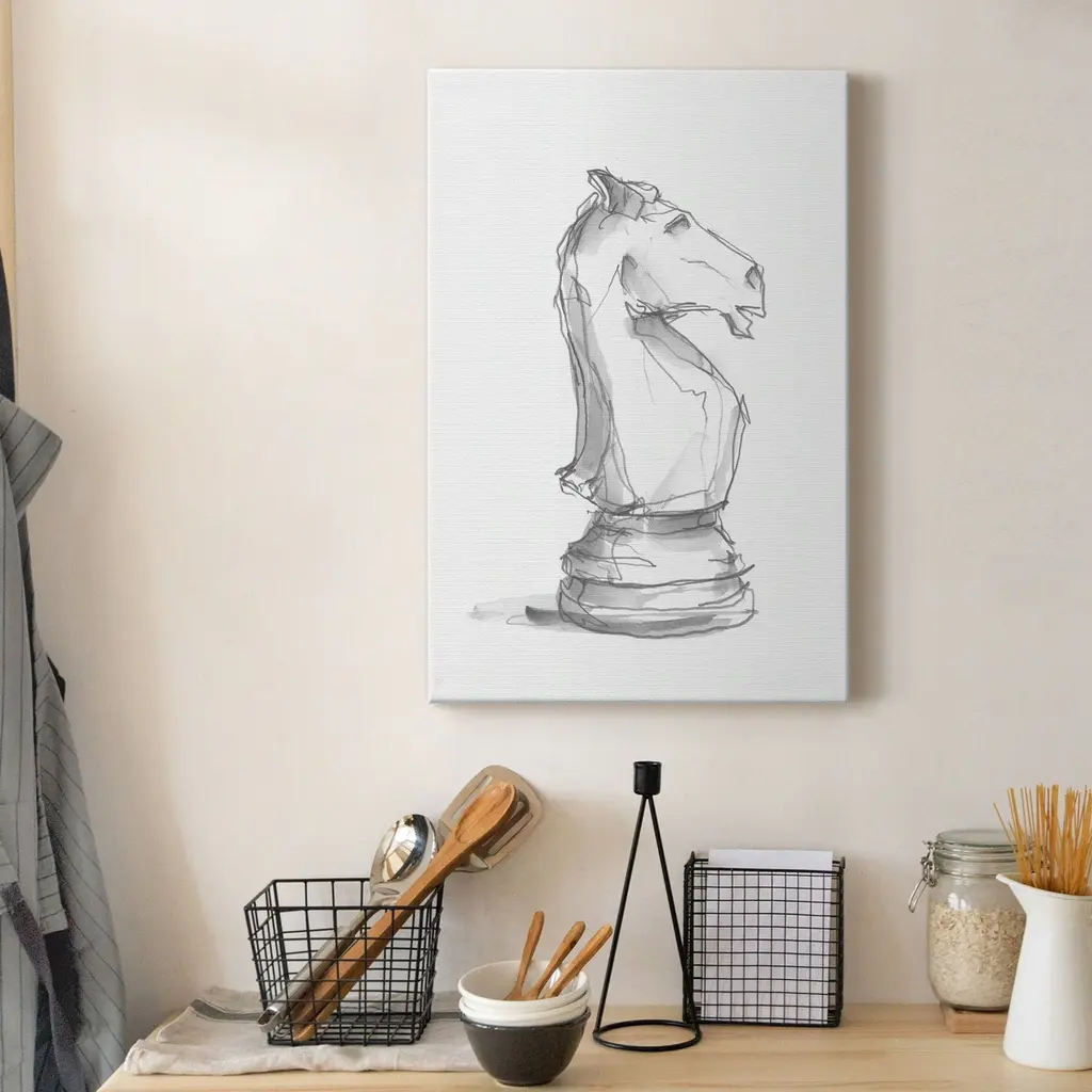 Chess Piece Study I Premium Gallery Wrapped Canvas - Ready to Hang A premium hand stretched gallery wrapped canvas print created to last. Featuring a beveled a solid wood stretcher bar, each piece comes ready to hand 6 SIZES AVAILABLE 8''X12'' - Overall Size 12''X18'' - Overall Size 18''X27'' - Overall Size 24''x36'' - Overall Size 32''x48'' - Overall Size 40''x60'' - Overall Size Each piece is made to order. Built to Last Each piece comes ready to hang Solid wood stretcher Fade and Water resistant Made domestically