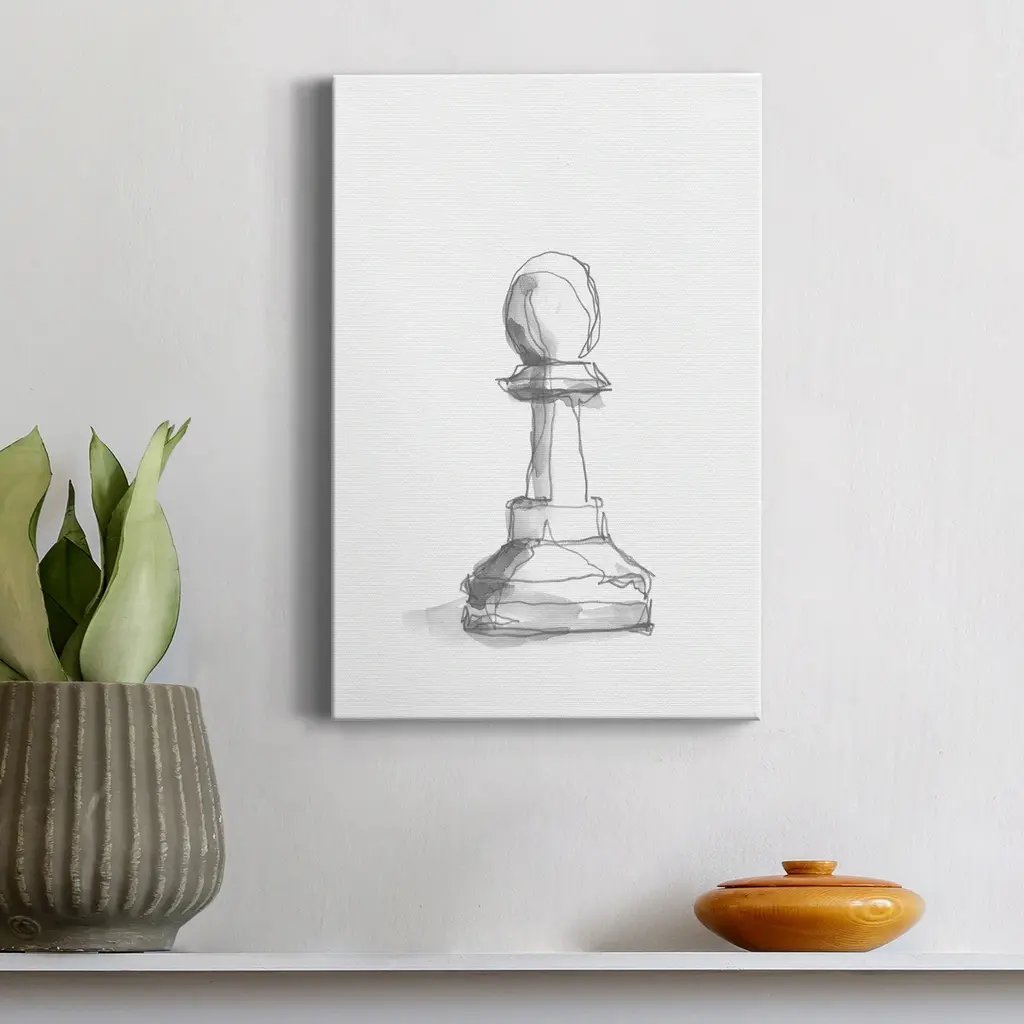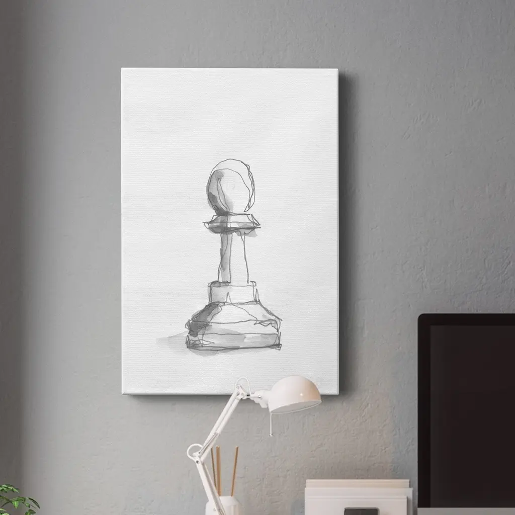 Chess Piece Study VI Premium Gallery Wrapped Canvas - Ready to Hang A premium hand stretched gallery wrapped canvas print created to last. Featuring a beveled a solid wood stretcher bar, each piece comes ready to hand 6 SIZES AVAILABLE 8''X12'' - Overall Size 12''X18'' - Overall Size 18''X27'' - Overall Size 24''x36'' - Overall Size 32''x48'' - Overall Size 40''x60'' - Overall Size Each piece is made to order. Built to Last Each piece comes ready to hang Solid wood stretcher Fade and Water resistant Made domestically