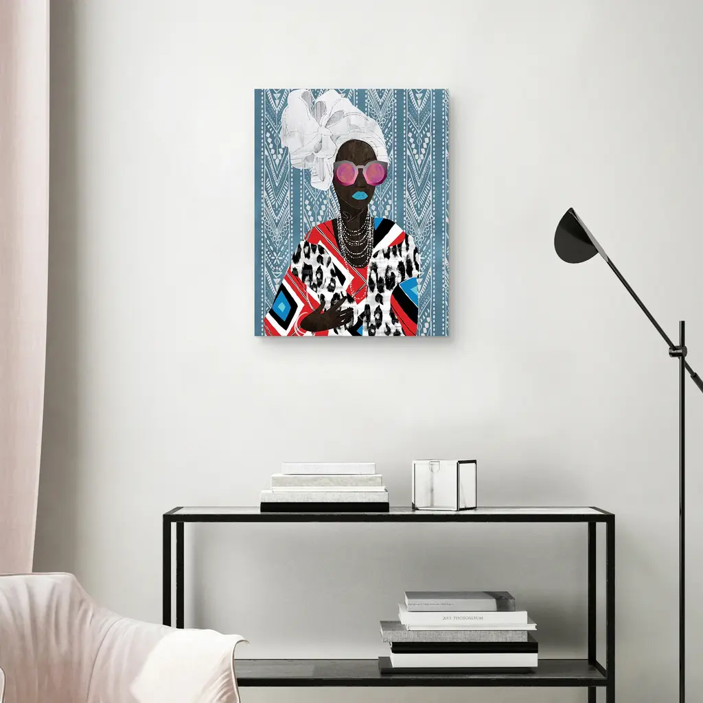 Chevron Queen on Blue by Nikki Chu Canvas Art Print is produced with printing that covers the entirety of the canvas for a sleek and stylish museum-quality look. Our framed prints are made by expert craftsmen who strive to make each canvas the masterpiece