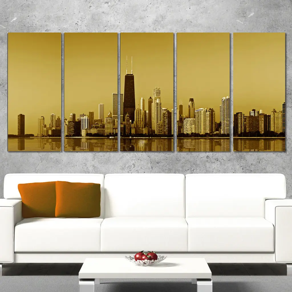 "Chicago Gold Coast With Skyscrapers" Canvas Print60"x28", 5-Panels