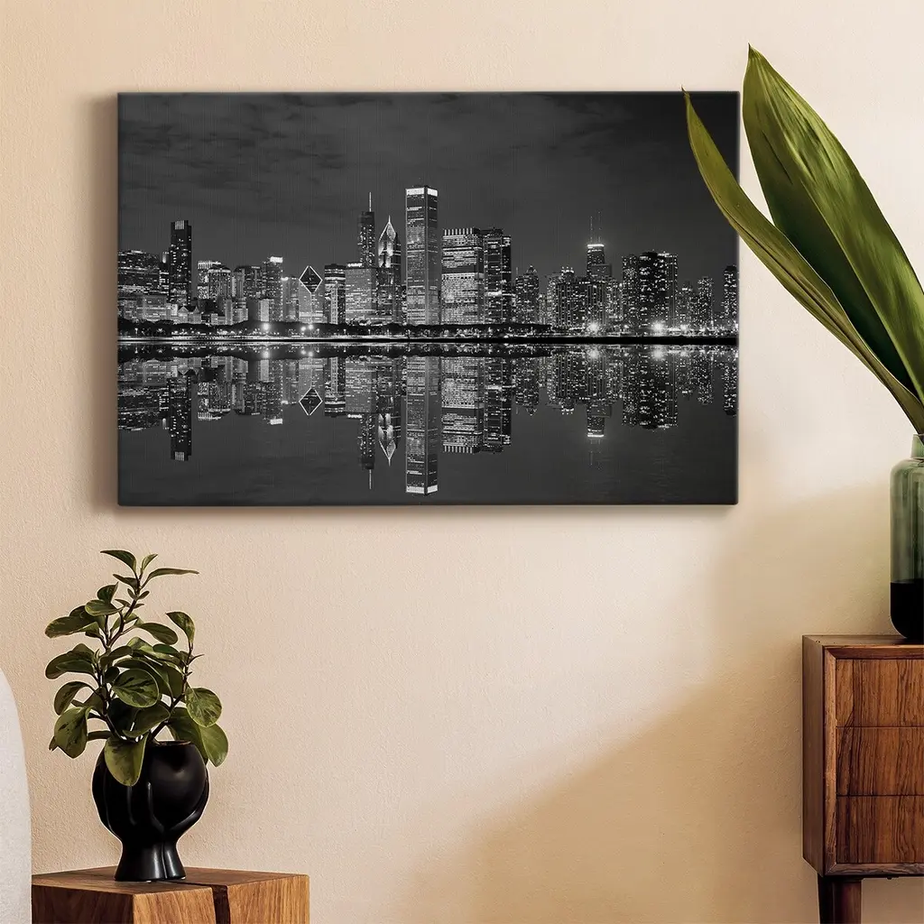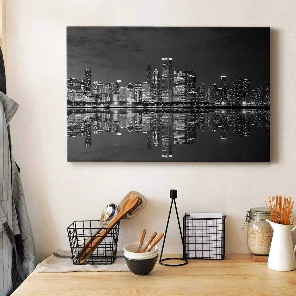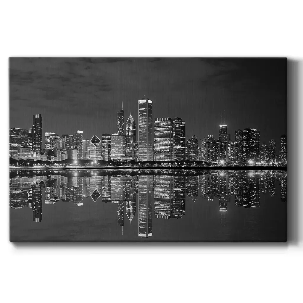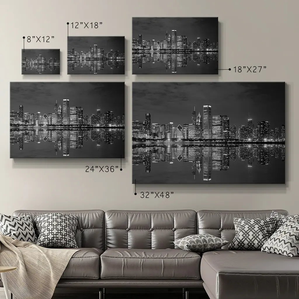 Chicago Panorama Black&White Premium Gallery Wrapped Canvas - Ready to Hang A premium hand stretched gallery wrapped canvas print created to last. Featuring a beveled a solid wood stretcher bar, each piece comes ready to hand 6 SIZES AVAILABLE 8''X12'' - Overall Size 12''X18'' - Overall Size 18''X27'' - Overall Size 24''x36'' - Overall Size 32''x48'' - Overall Size 40''x60'' - Overall Size Each piece is made to order. Built to Last Each piece comes ready to hang Solid wood stretcher Fade and Water resistant Made domestically