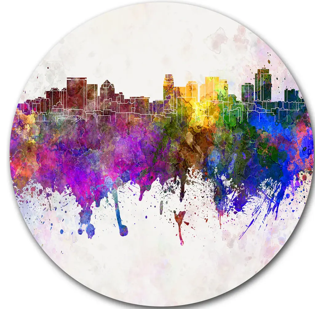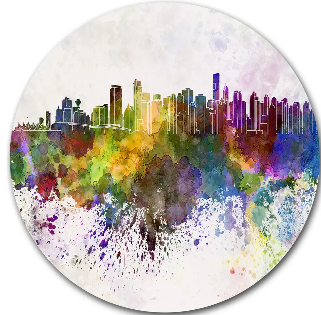 Bring Contemporary Abstraction to your home with this large Circle Metal wall art. This Chicago Skyline Metal Artwork makes it the focal point of any room or office. - White Gloss Coating ensures colors are extra vibrant with light reflection.- Aluminum grade Sheet Metal with 1 inch mounting frame on the back giving the illusion that the artwork is floating on the wall..- Mounting Brackets are included along with instructions.- High Quality Digital images are created directly into a glossy aluminum panel producing a stunning and captivating print into the glossy finish of the metal.- Water, Fire and Scratch resistant HD Aluminum panels.- Looks better than any photo paper and guaranteed to last at least 20 years- Easy to clean with a microfiber cloth. Colors are far superior to regular Canvas Art. - Easy to Hang
