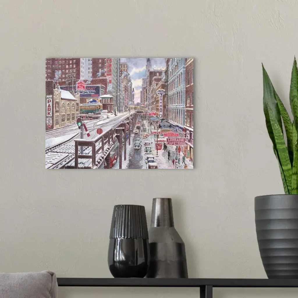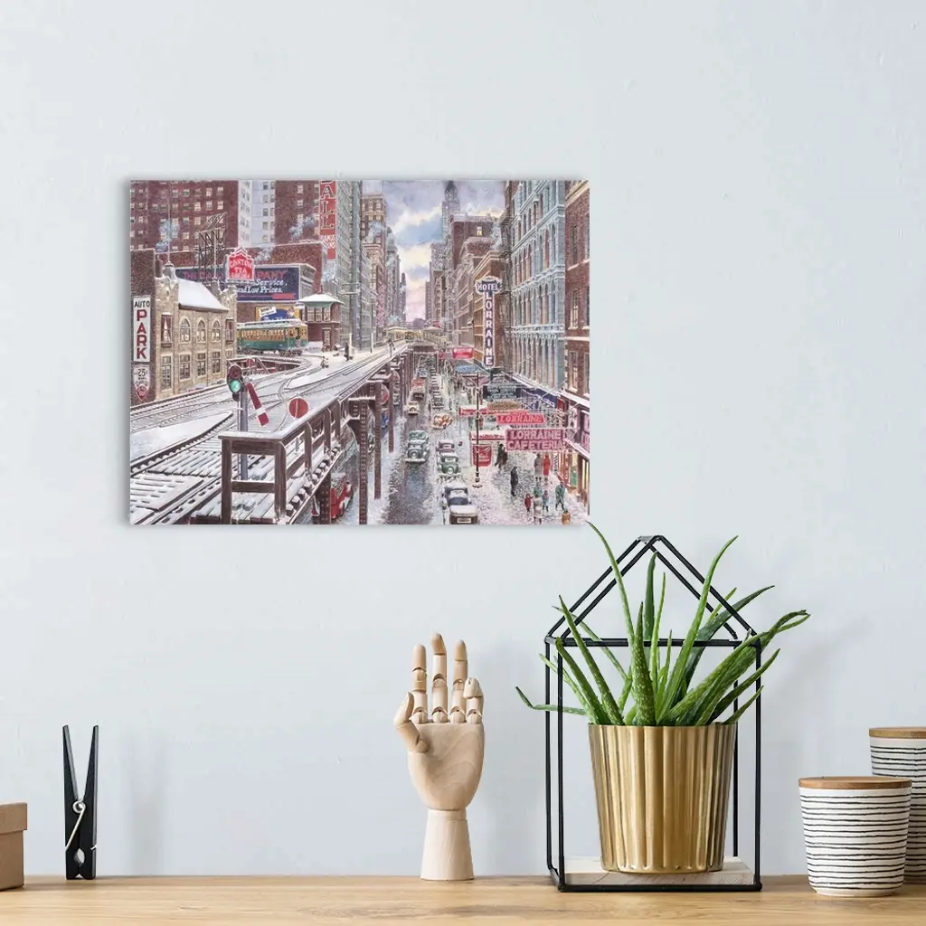 Contemporary painting of the rails that go through the Loop in Chicago.
