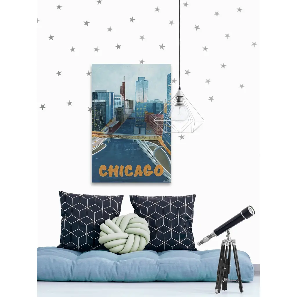 This blue-toned print features The Chicago River with its characteristic skyscrapers along the horizon. Proudly made in the USA, this piece is printed on canvas before it's stretched over non-warping wooden bars for a gallery-wrapped look. With wall-mounting hooks included, this artful accent is ready to hang up as soon as it reaches your front door. • Fine art canvas print from the Marmont Hill Art Collective • Professionally hand stretched • Gallery wrapped in sustainable, non-warping wood • Arrives ready to hang • Made in the USA • Includes a certificate of authenticity