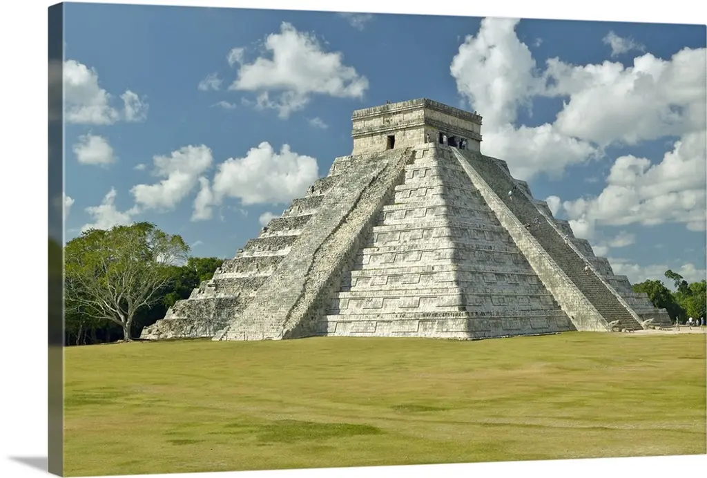 Chichen Itza, Kukulkan Temple, Metal Print Wall Art, 3 Panel Split, 48x24