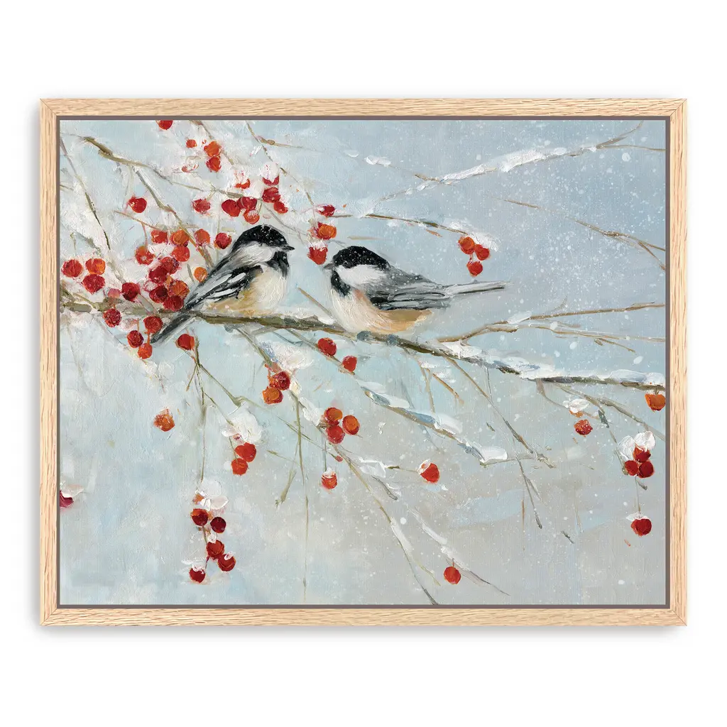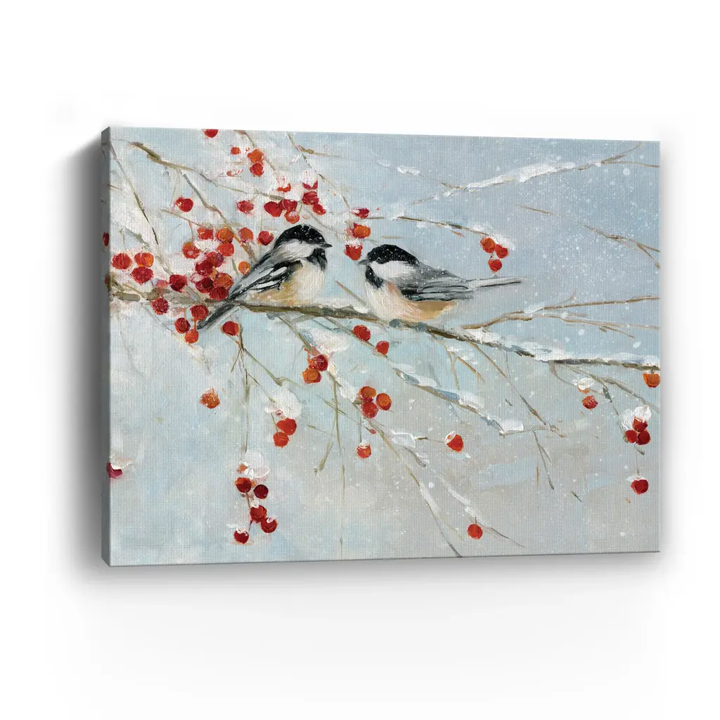 This canvas print evokes the gentle magic of winter mornings, with chickadees nestled among snow-dusted berries. Ideal for holiday decor or year-round tranquility, it adds warmth and grace to your space. Our Gallery Wrap Canvas Prints are proudly assembled with high quality materials in California, USA. Each piece is printed on a thick, archival grade canvas using Giclee technology. It is then hand-stretched by our experienced artisans over solid wood bars, which will not warp over time. The final product is a piece personally crafted for you to confidently display on your wall. Care and Assembly: Ensure that the location of your piece has little to no exposure to heat, sunlight, and moisture. Wipe clean, only if needed. Each piece includes hanging hardware to hang on your wall horizontally.