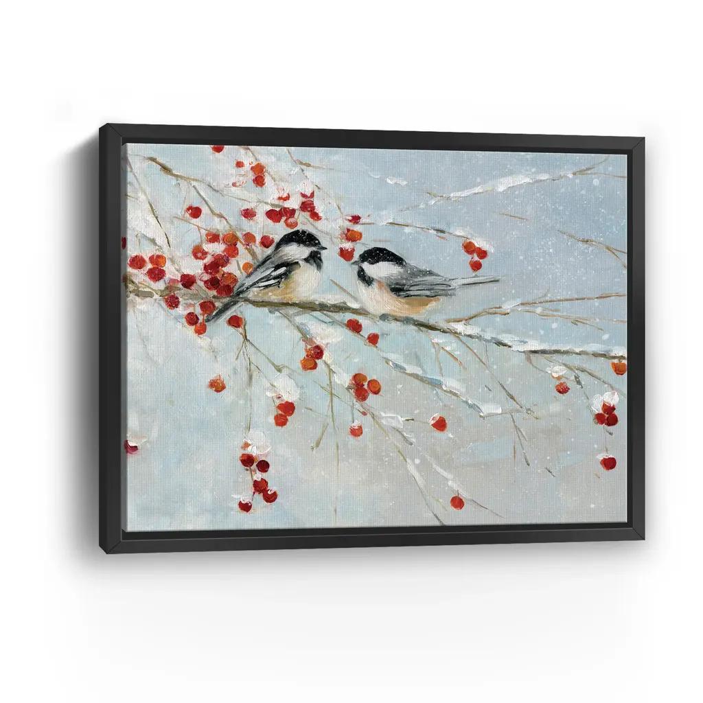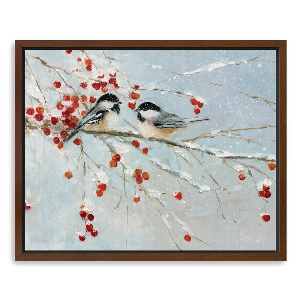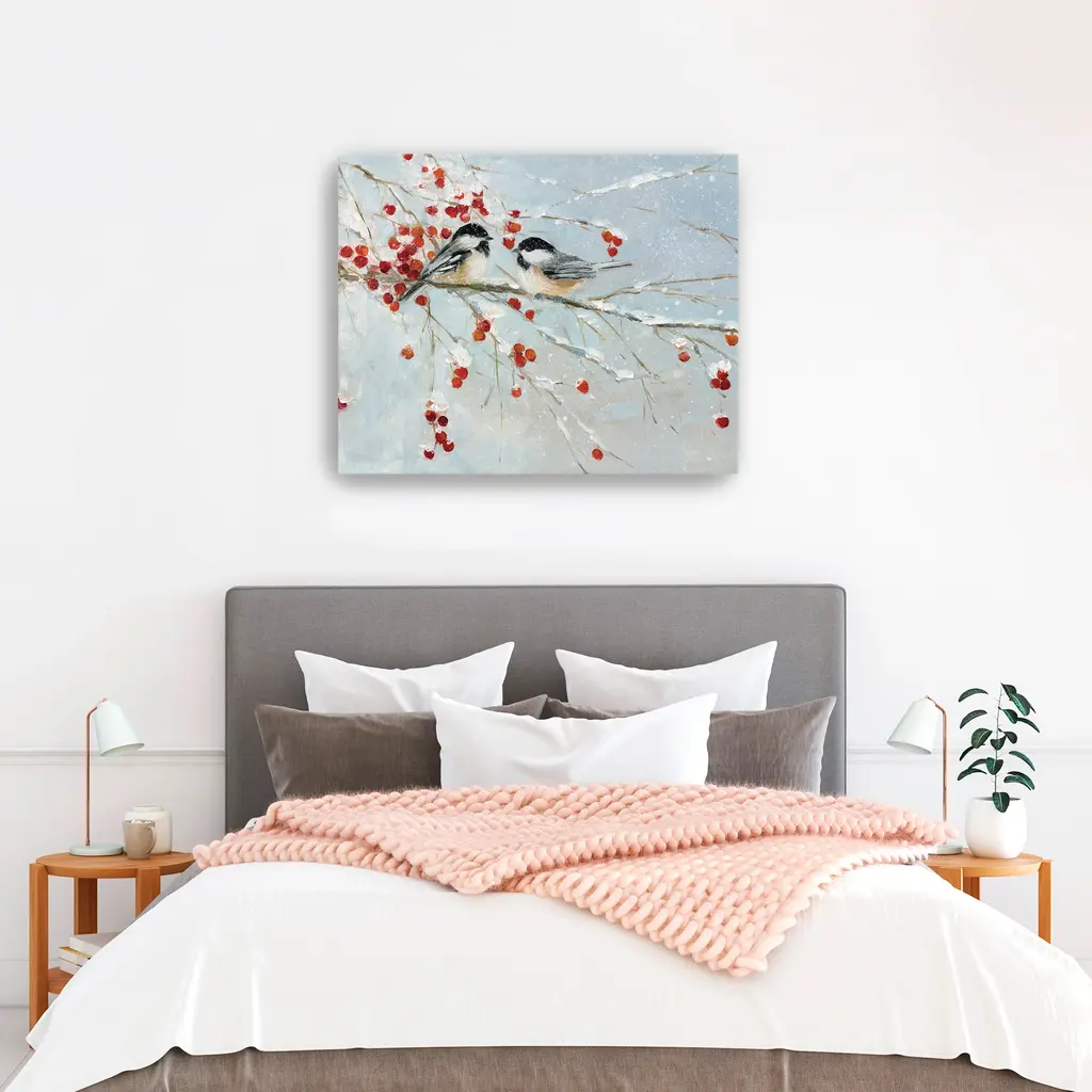 This canvas print evokes the gentle magic of winter mornings, with chickadees nestled among snow-dusted berries. Ideal for holiday decor or year-round tranquility, it adds warmth and grace to your space. Our Gallery Wrap Canvas Prints are proudly assembled with high quality materials in California, USA. Each piece is printed on a thick, archival grade canvas using Giclee technology. It is then hand-stretched by our experienced artisans over solid wood bars, which will not warp over time. The final product is a piece personally crafted for you to confidently display on your wall. Care and Assembly: Ensure that the location of your piece has little to no exposure to heat, sunlight, and moisture. Wipe clean, only if needed. Each piece includes hanging hardware to hang on your wall horizontally.