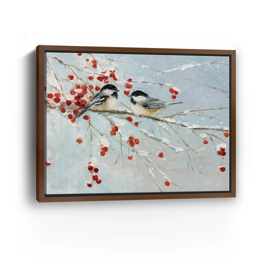 Chickadees In Winter Canvas Giclee - Framed / Dark Walnut / 16x20