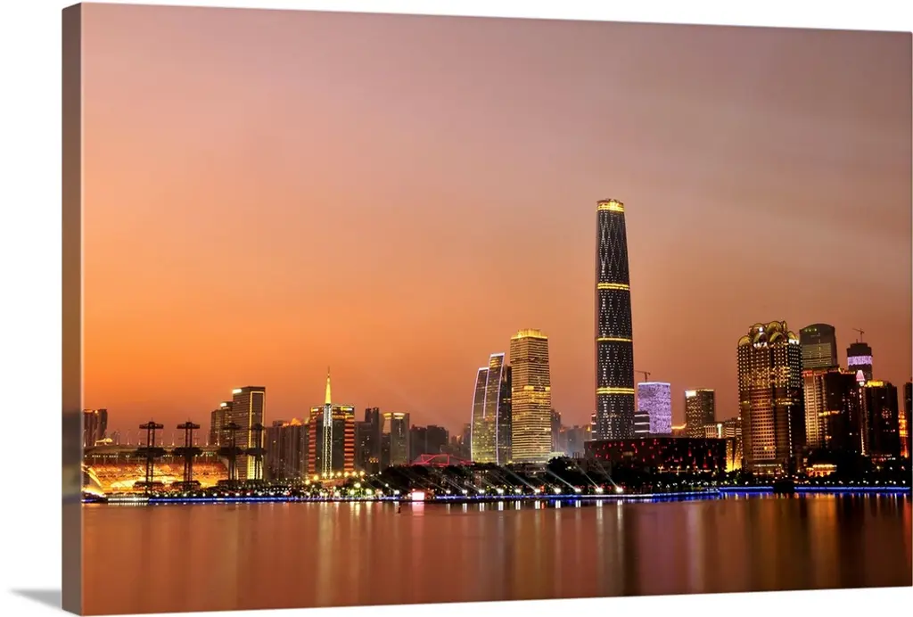 China Hangzhou Skyscrapers, Cityscape Canvas Art Print, 32"x16"